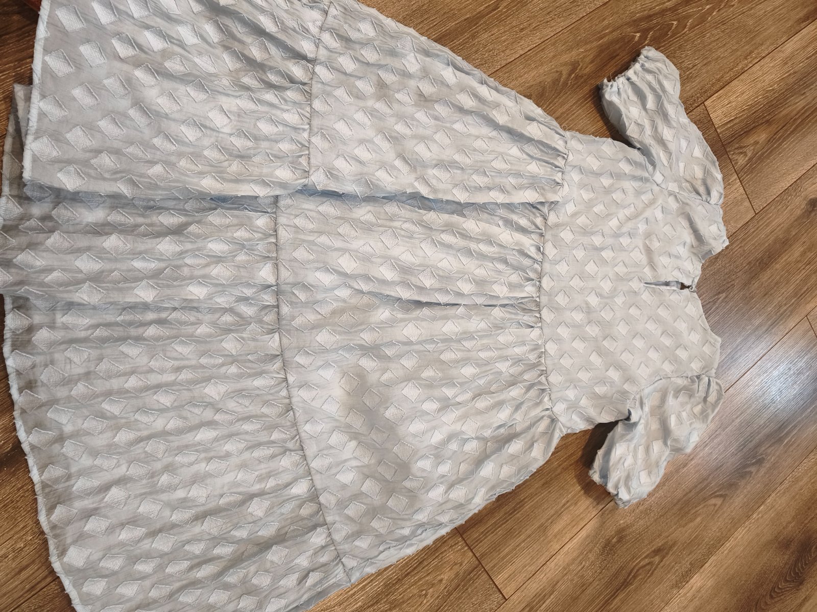 Ponúkam modraste madeirove šaty s dlhým rukávom. Množstvo drobných detailov, použité len pár krát. Celé sú podsite , okrem rukávov, zapínanie vzadu na šiji. V prednej časti je svetlejší fľak, nevi...