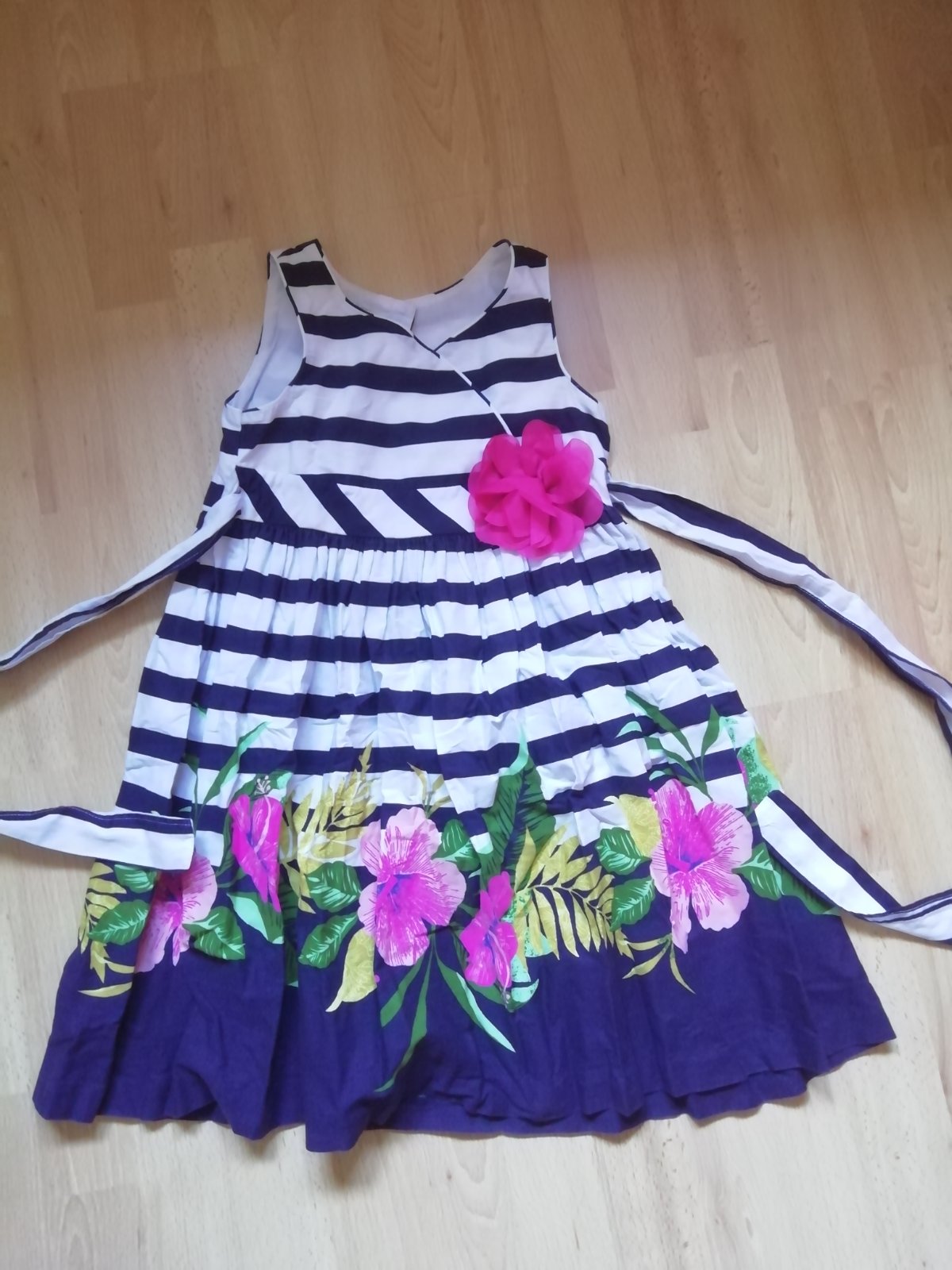 Krásne šaty,s kvetovanym živôtikom, trblietavou sukňou,zaväzovacou mašľou v zadu a spodnickou,raz oblečené,top stav