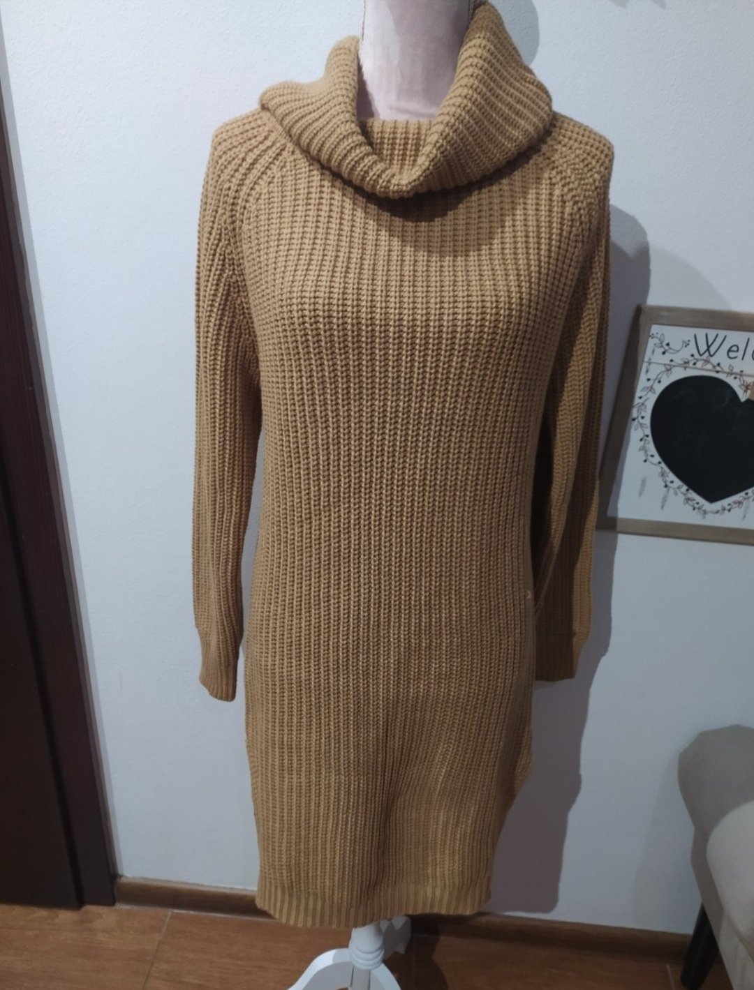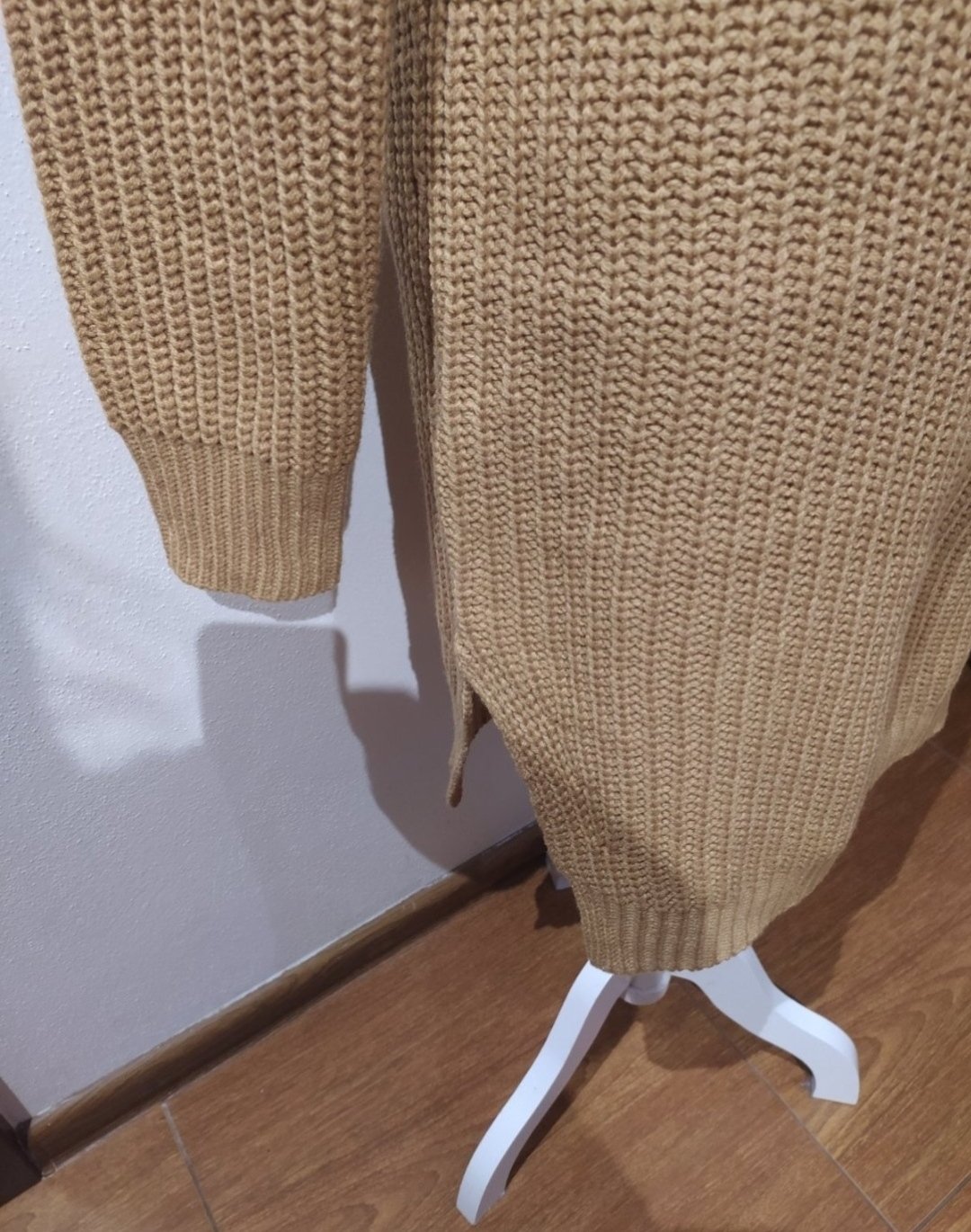 Pohodlné pletené šaty s ozdobnými zlatými gombíkmi, okrúhlym výstrihom a dlhými rukávmi, zdobené vzorovanou potlačou, elastické. Šaty sú krásneho obtiahnutého strihu ktorý sa pekne prispôsobí posta...