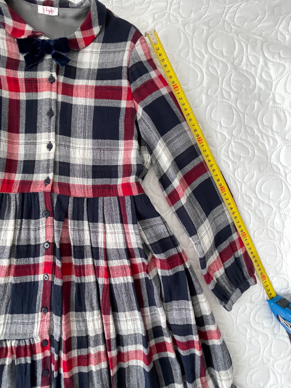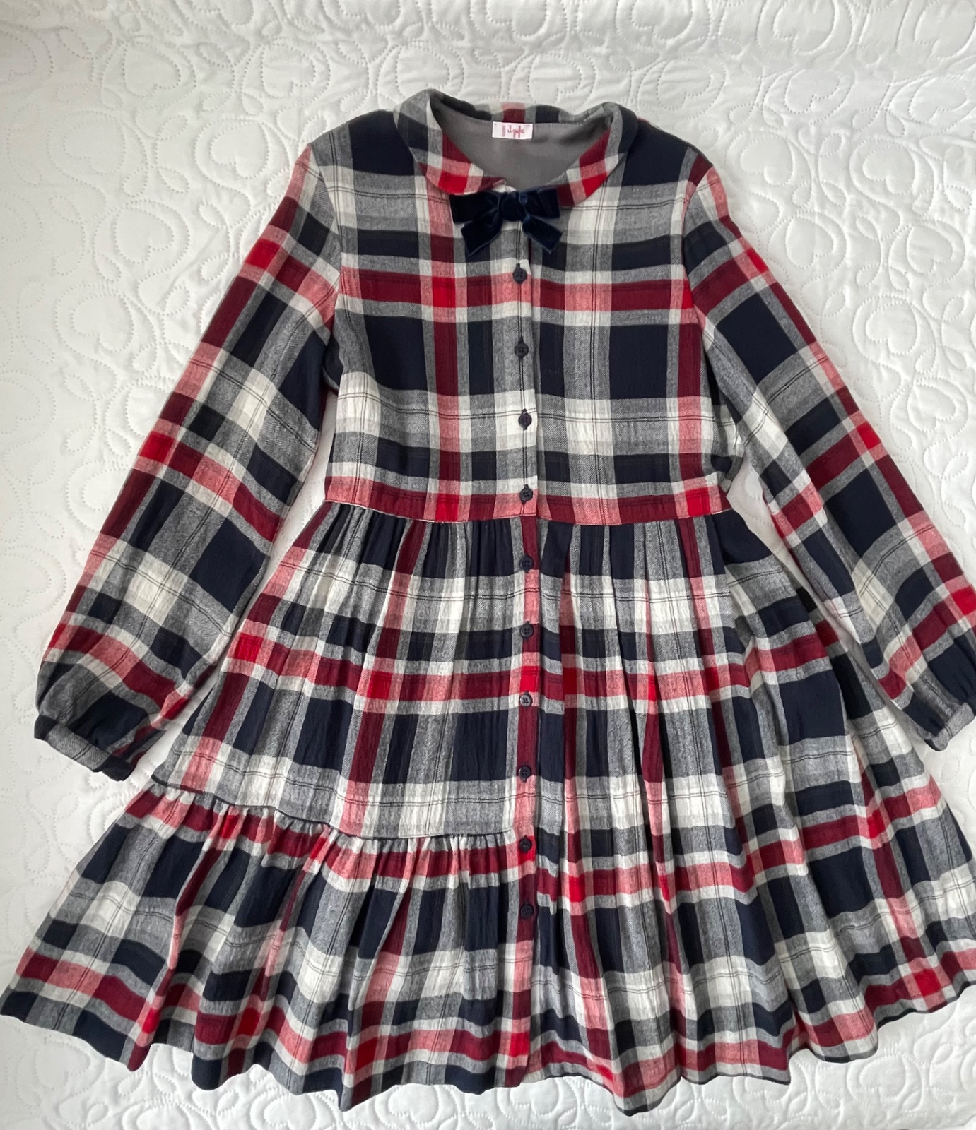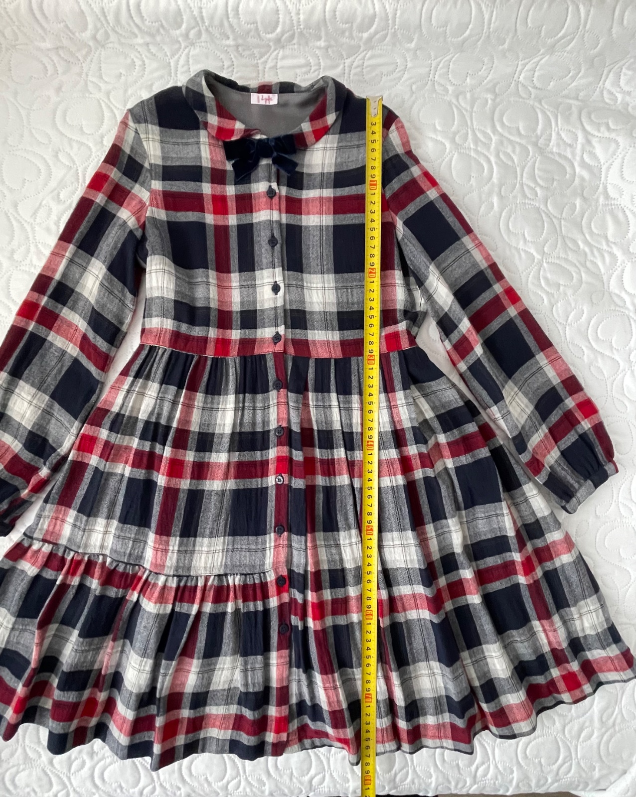 Predám červeno-zelené kárované šaty s metalizovanými niťami značky F&F na 9-10 ročné dievča.