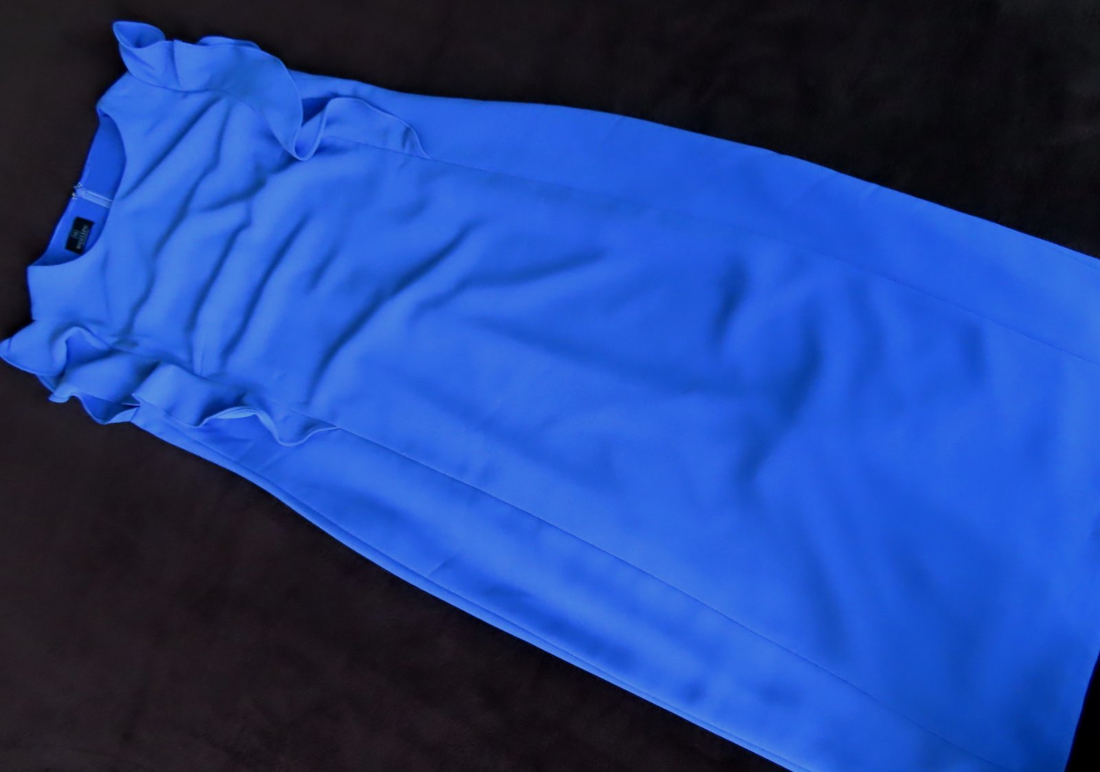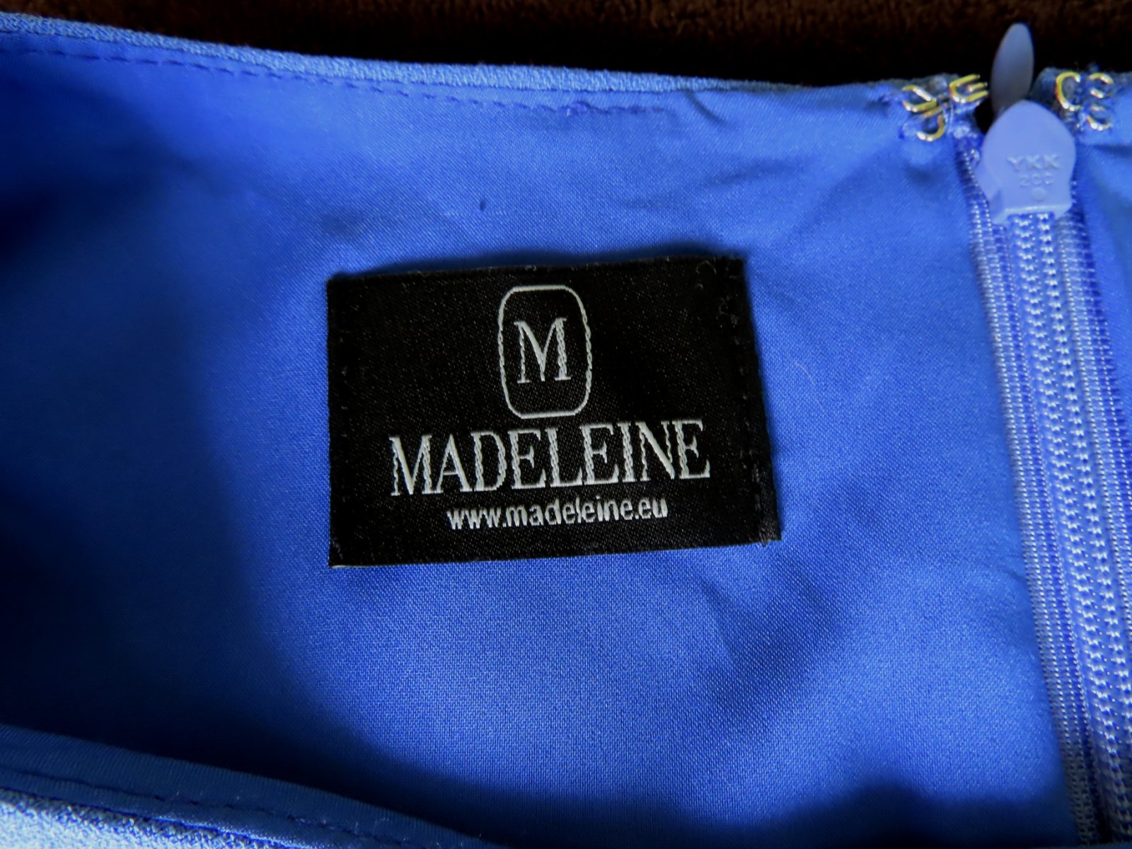 Krásne, elegantné šaty zn. Madeleine, veľ. M, rozmery: dĺžka 112cm, pod pazuchami 2x48cm, pás do 2x44cm, boky 2x52cm. Farba je kráľovská modrá.
