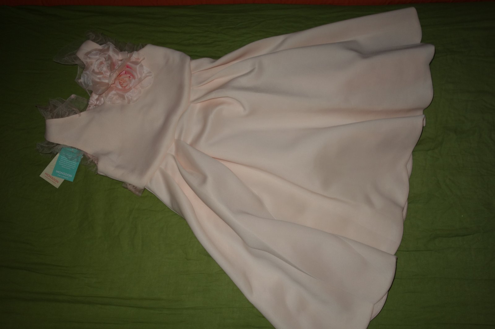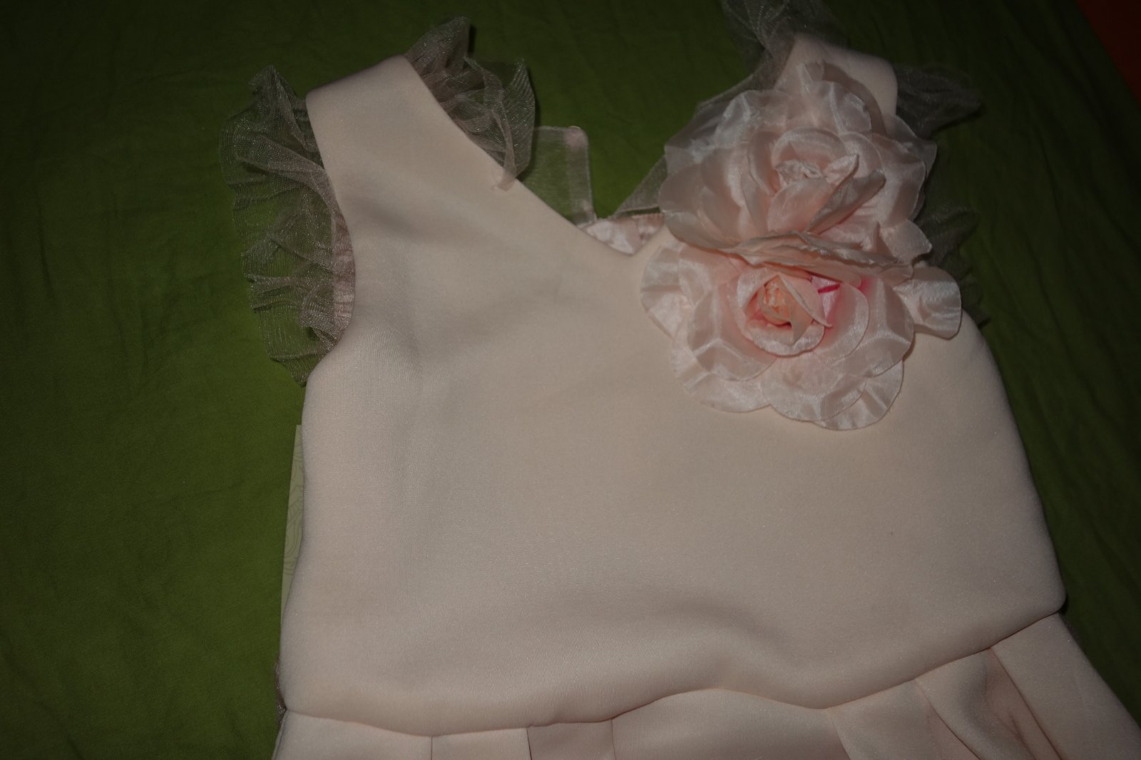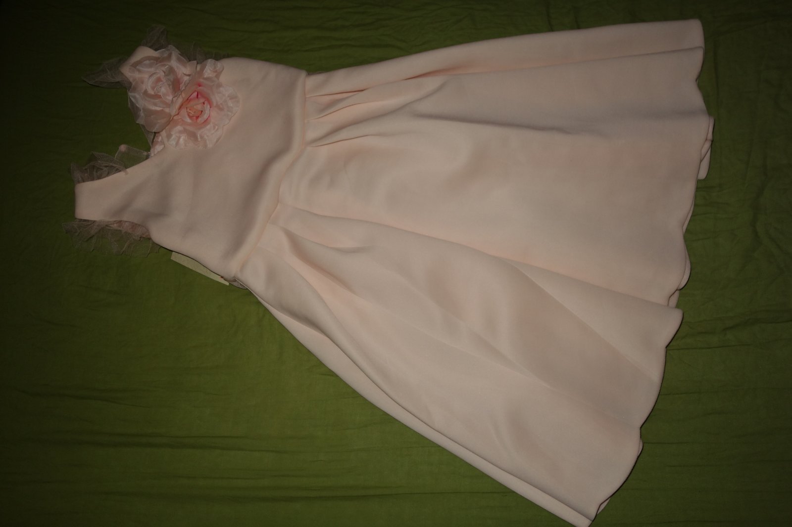 Nadherne sviatocne satocky- nove, s visacakmi. Su z hrubej latky, neodporucam na leto. Vpredu na pleci maju krasnu kvetinku, vzadu sa na pase uvazuje maslicka.