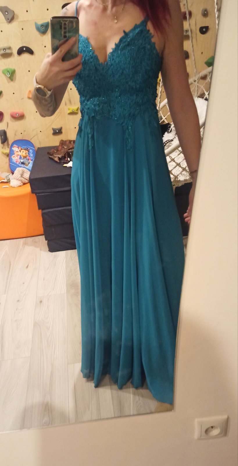 Predám spoločenské šaty,raz oblečené,su krásne.Farba je krásna petrolejova