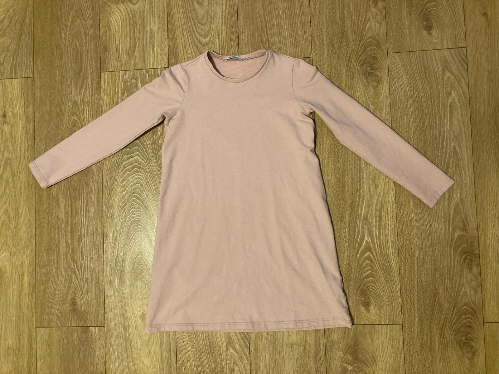 Priliehave ruzove saty s vybijanim na dekolte velkost XS dlzka 86 cm prsia 36-45x2 B112 At dd