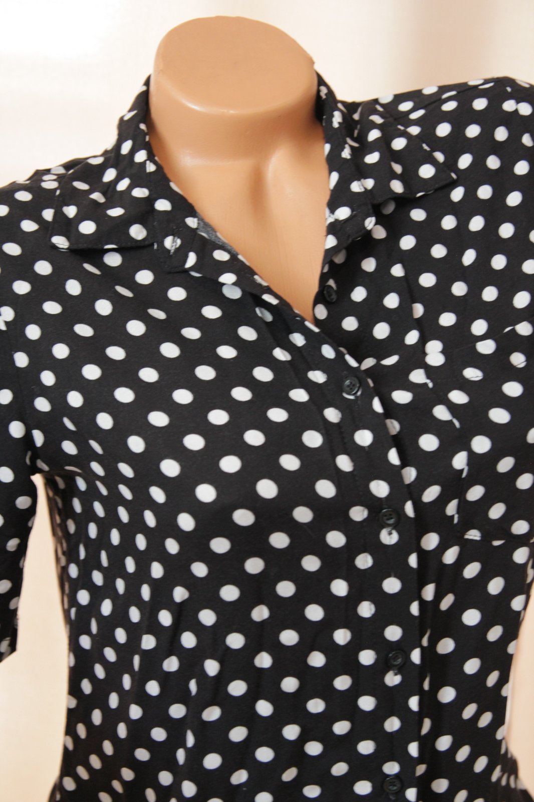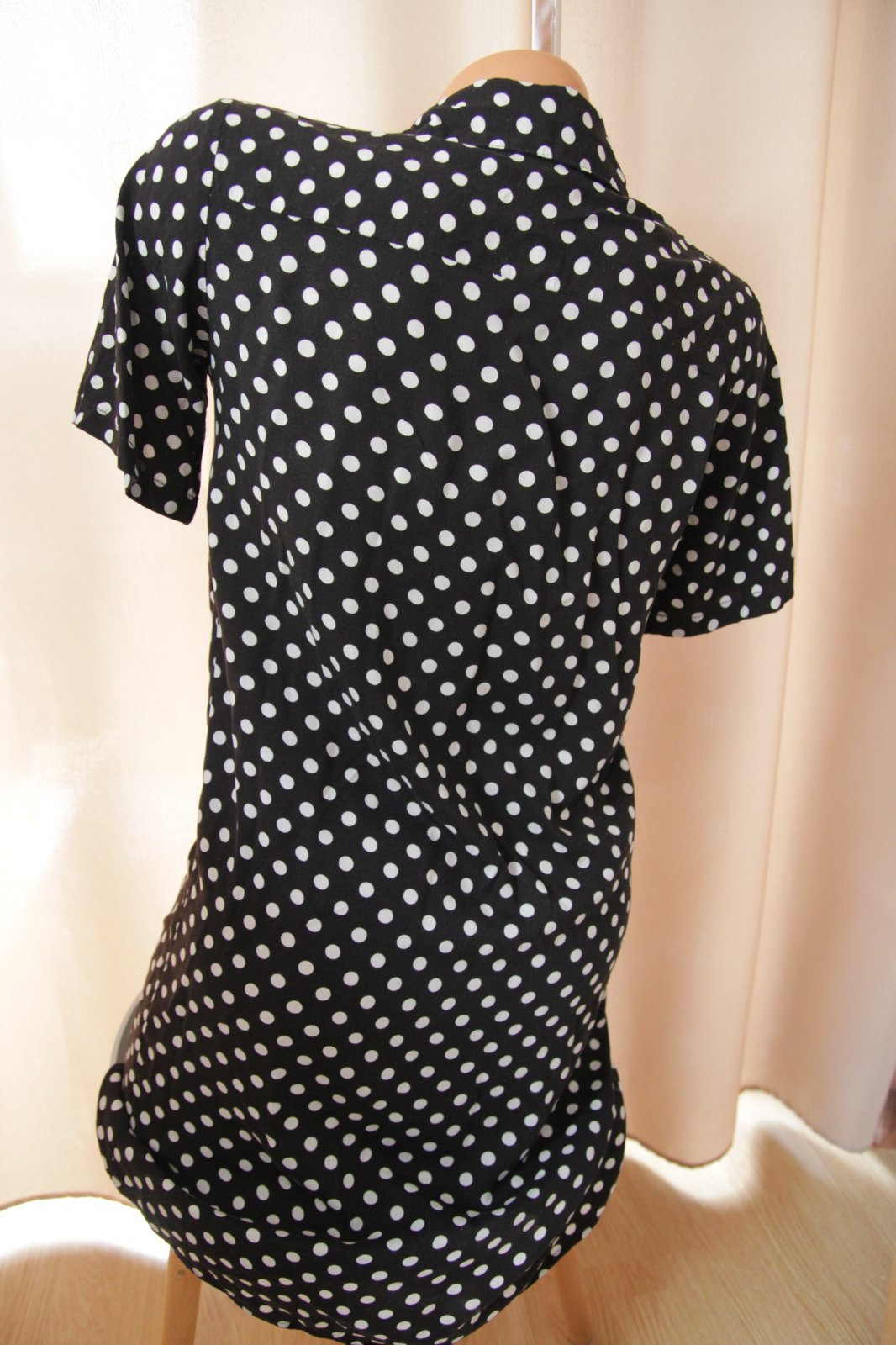 Čierno biele bodkované mini košeľové šaty, veľkosť S. Ľahký príjemný materiál.
