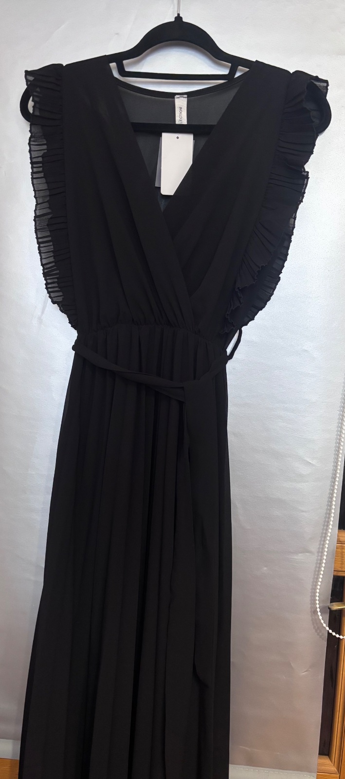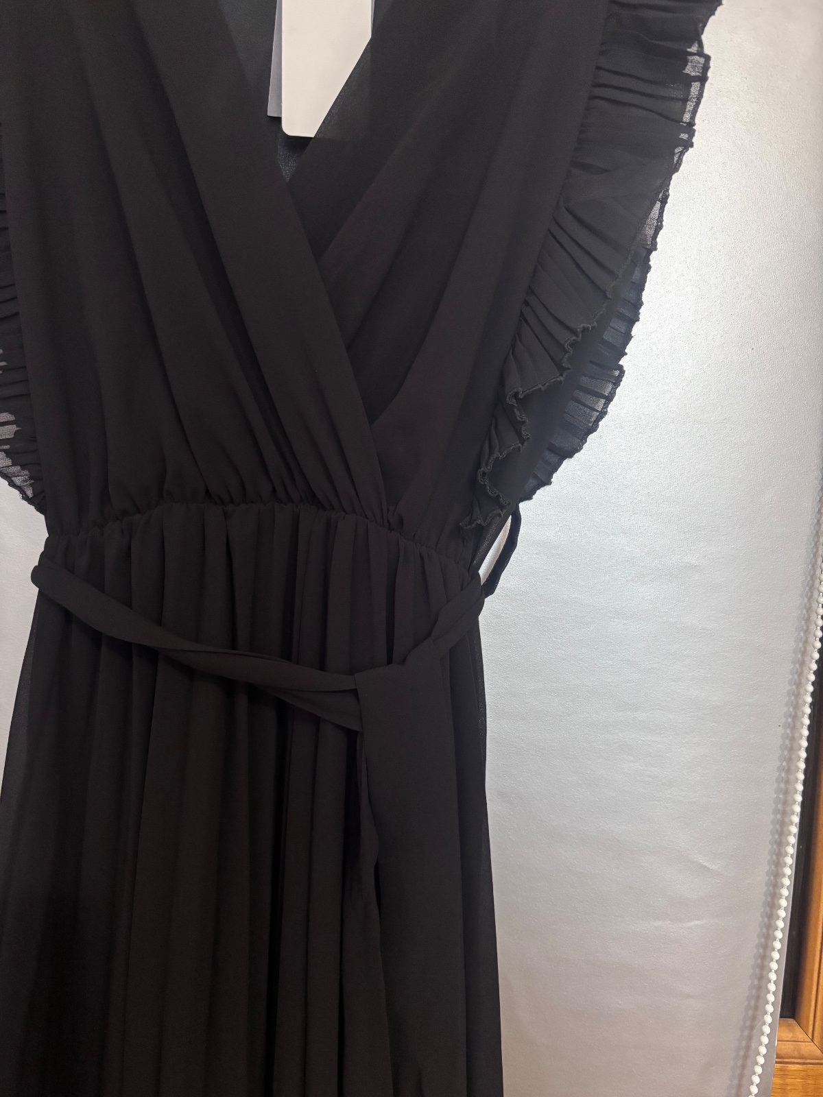SkladomDlhé čierne spoločenské saty s nariasenymi rukávmi