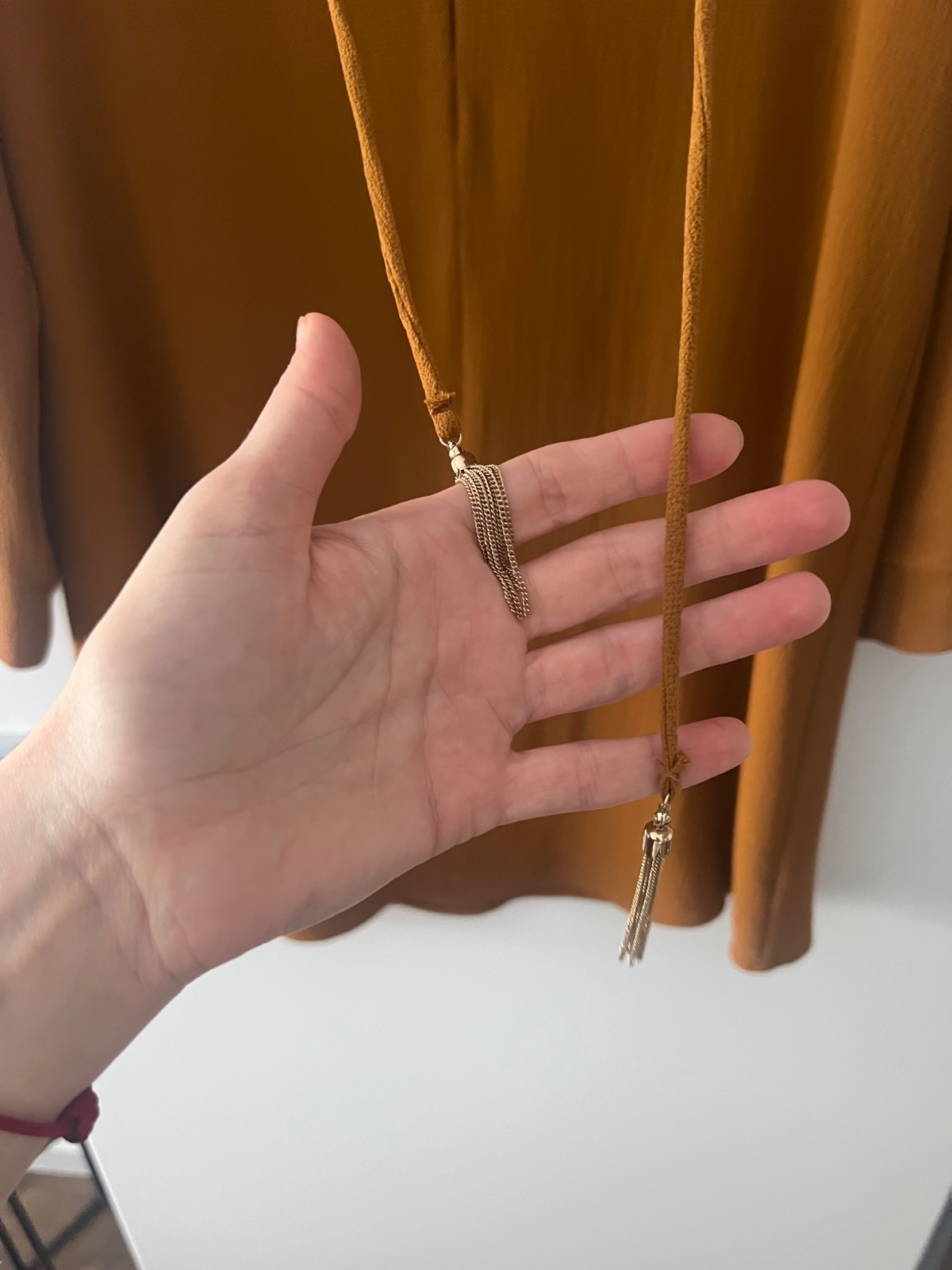 Horčicové šaty s retiazkou