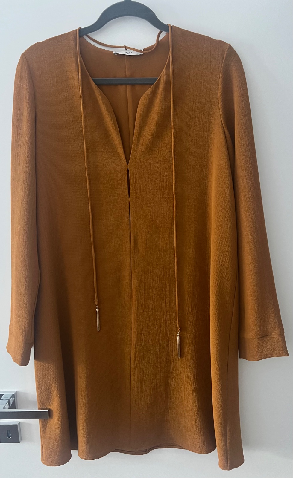 Horčicové šaty s retiazkou, mango,s