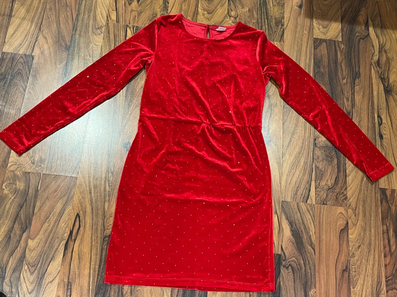 Predám krásne velúrové šaty Lindex velkost 158/164, ideálne na Vianoce alebo oslavu, top stav ako nové, na šatách su zlate bodky, cena 12€