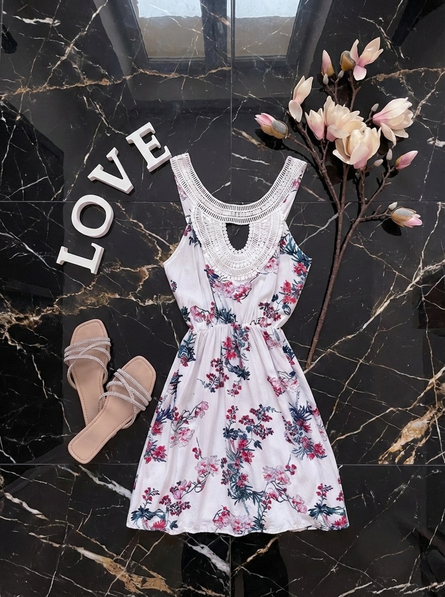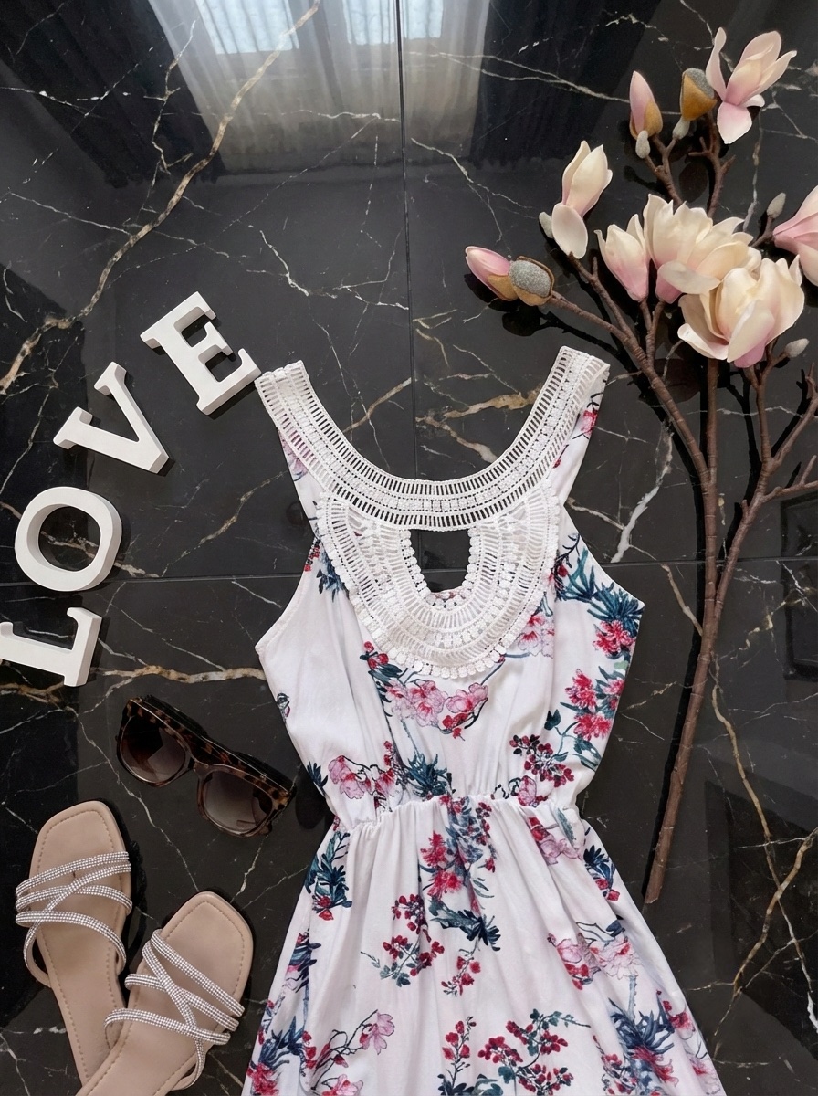 Snehovobiele letné šaty s floral motívom, nosené pár x na dovolenke, top stav bez chyby. V páse je gumička.
