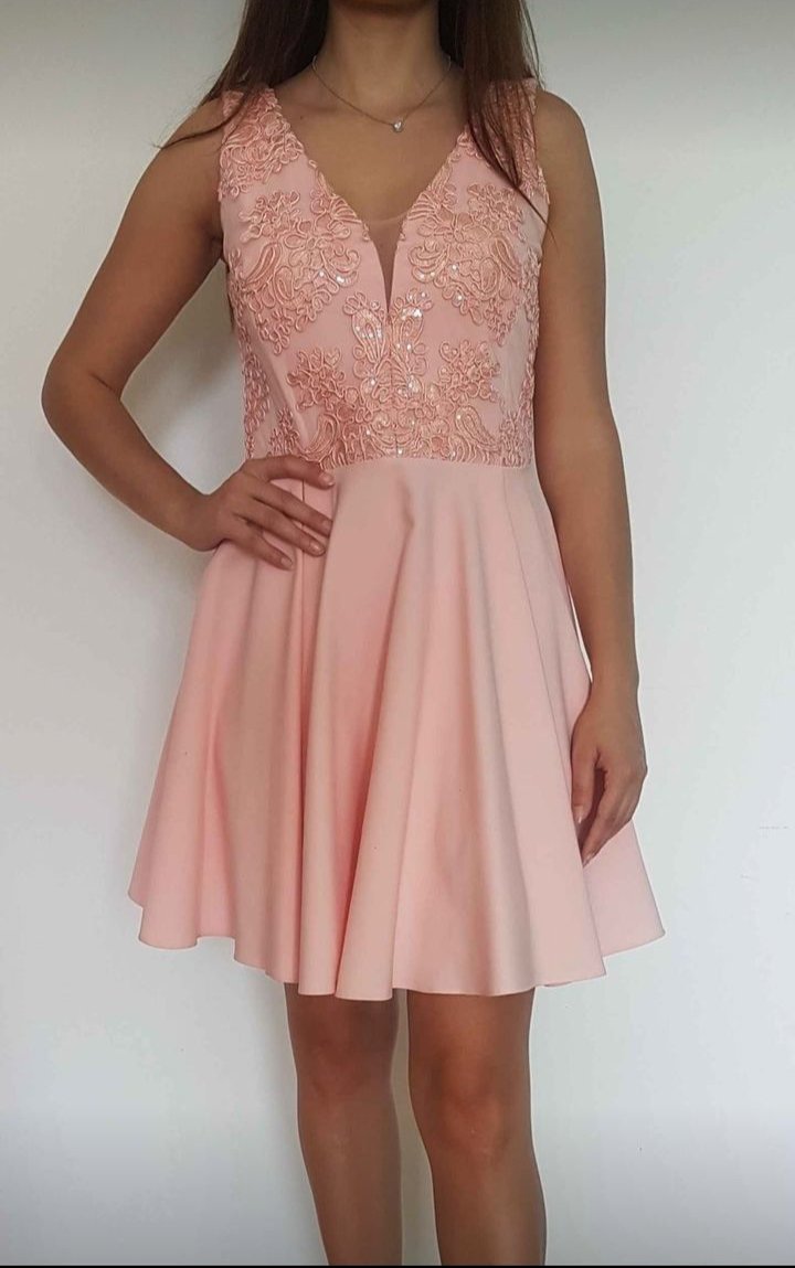Predám nové šaty krásnej lososovej farby. Veľkosť je UNI, takže sadnú na každú postavu, sú naozaj pekné. Hodia sa na rôzne príležitosti. Dĺžka šiat je 75cm.