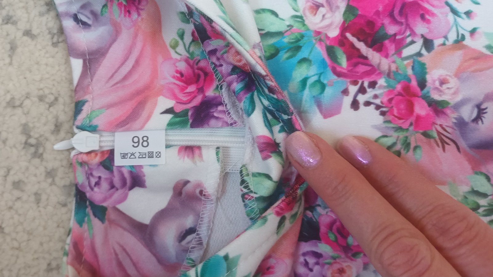 Veľmi lrásne, ako nové. Veľmi dobrý ľahký a prużný materiál. Pôvodná cena bola 39e. Veľkosť je tam 98, ale je to skôr 104 alebo aj na 110.