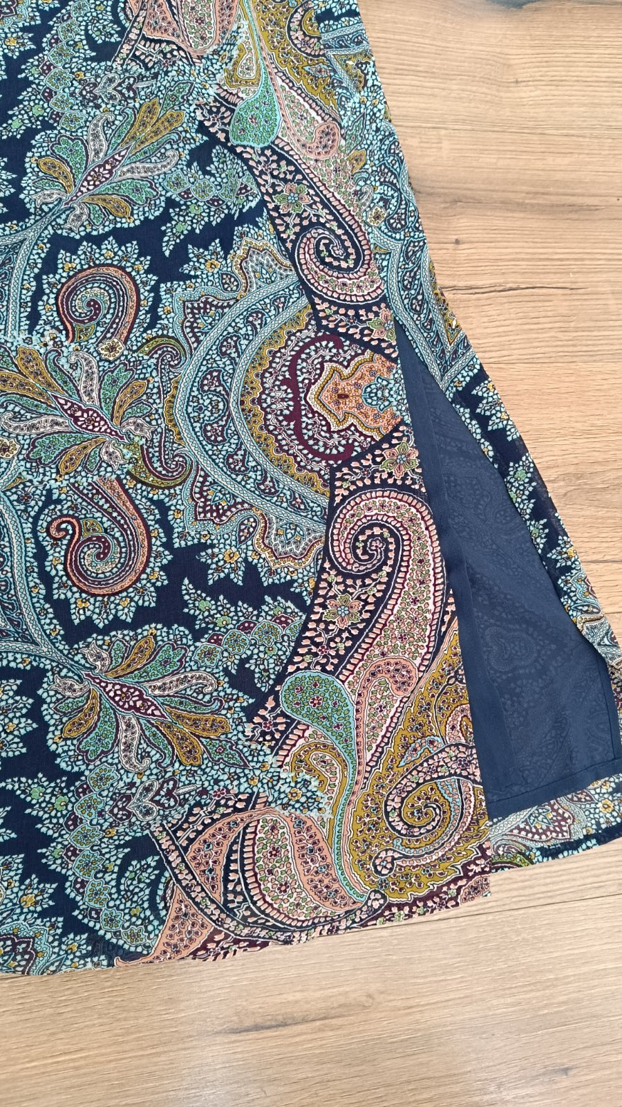 Pútavé letné,vzdušné šaty BOHO štýl. Veľ S ale sadne aj na M,L. Nosené,nemajú žiadne poškodenie ,chýba opasok.Šatky sú podšité, bočný rozparok z obidvoch strán. Krátky putavý rukáv, ideálne sú na vyššie postavy od 168cm.Celková dĺžka 150cm,prsia 2x50cm, prispôsobivý pás: gumička, merané pri Max.natiahnutí 2x50cm.