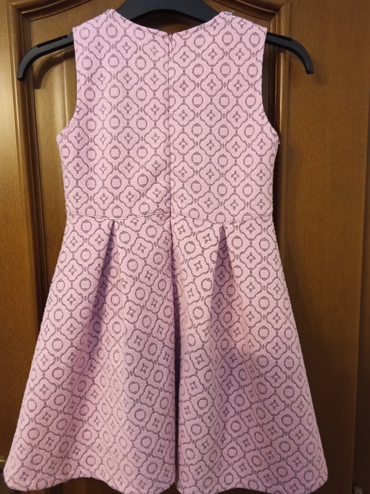 nosené, bez poškodení tenučký letný materiál, s podšívkou zaujímavý strih šiat uvedená veľkosť 128 dĺžka 76 až 93 cm šírka cez prešitie 2x 31 cm materiál sa nenaťahuje