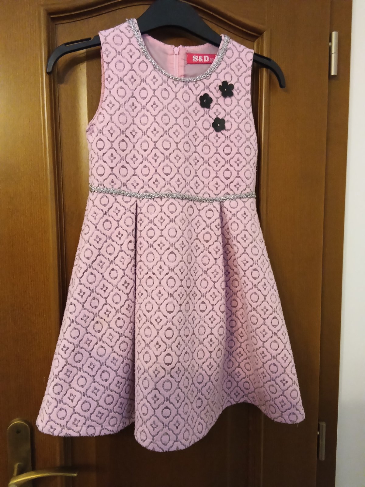 Predám dievčenské šaty veľkosť 128, veľmi lahučký materiál. Šaty boli párkrát nosené, sú v 100% stave.