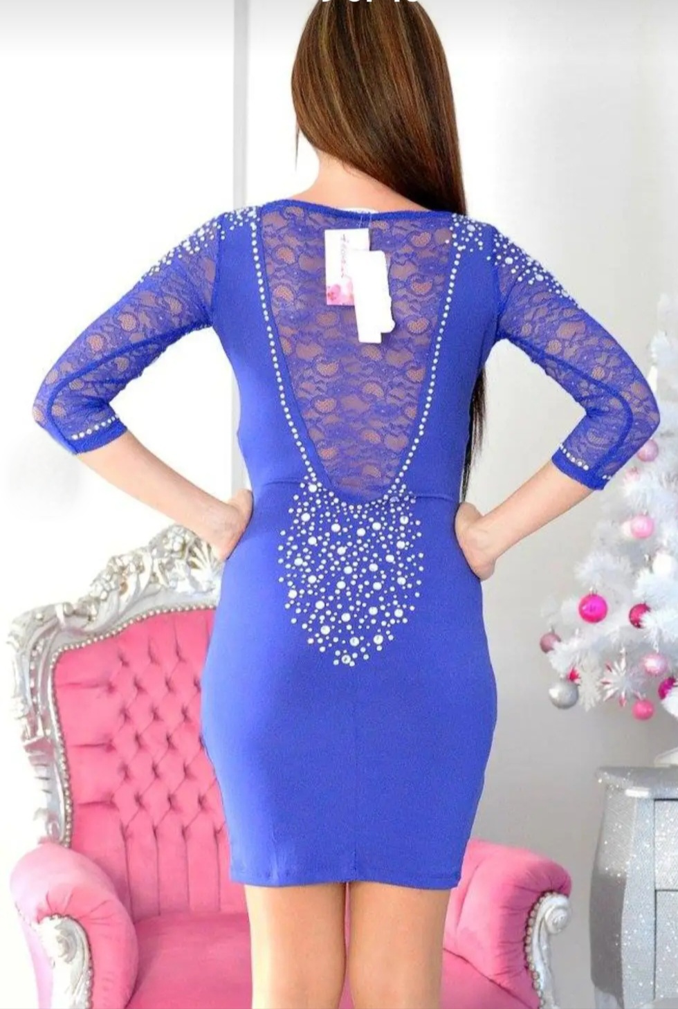 Dámske, resp.skor dievčenské šaty s 3/4 rukávom tmavomodrej farby ackoveho strihu. Foto s rozmermi aj na postave v galérii.