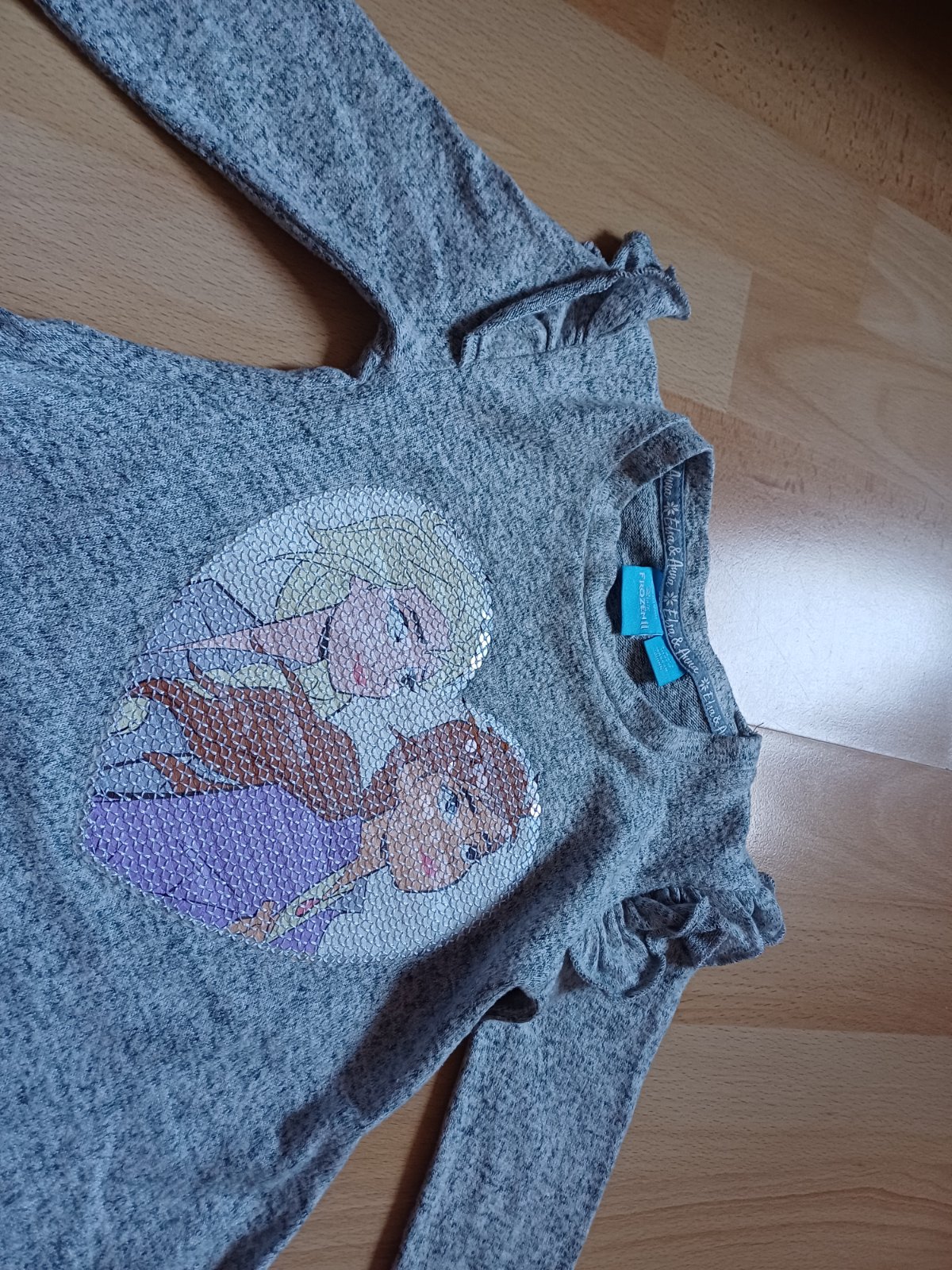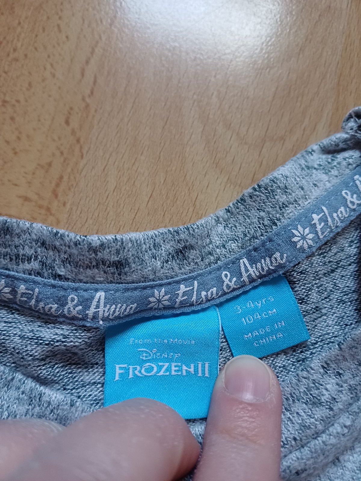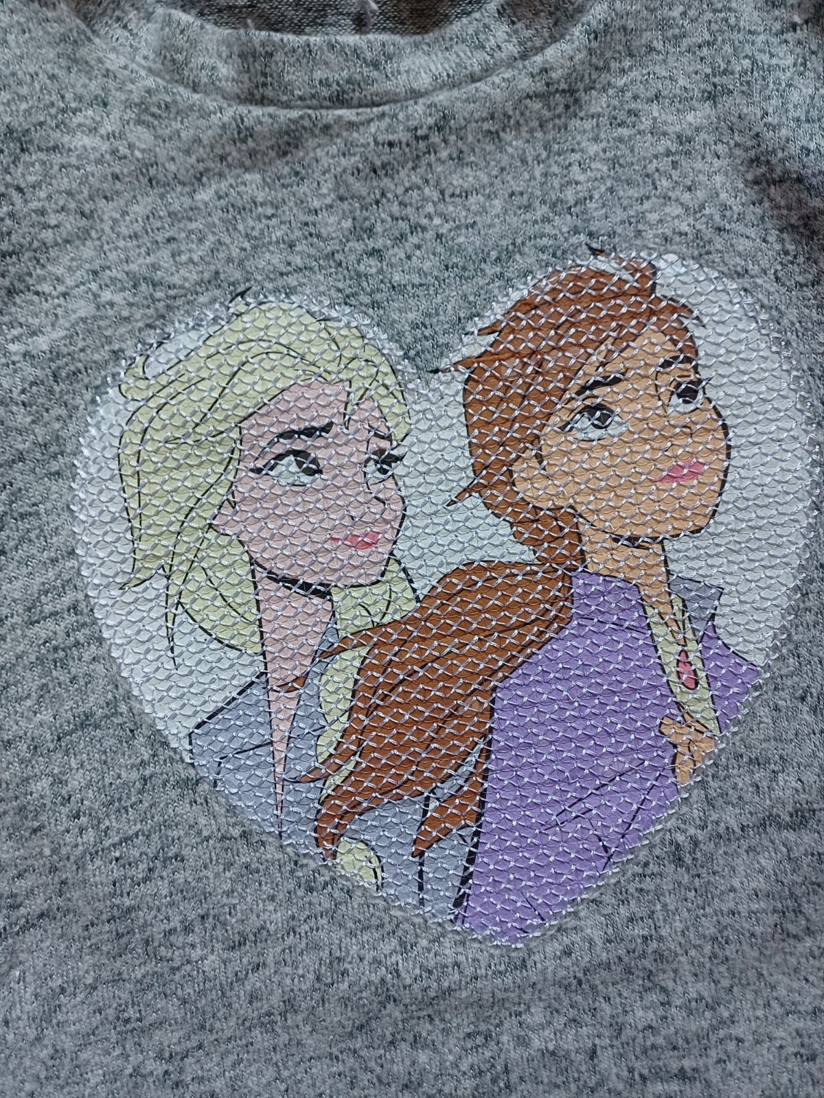 Šaty z tenšieho padaveho materialu ako tenky svetrik, takže trocha teplejšie ako klasicke bavlnene. Motiv Frozen a flitre