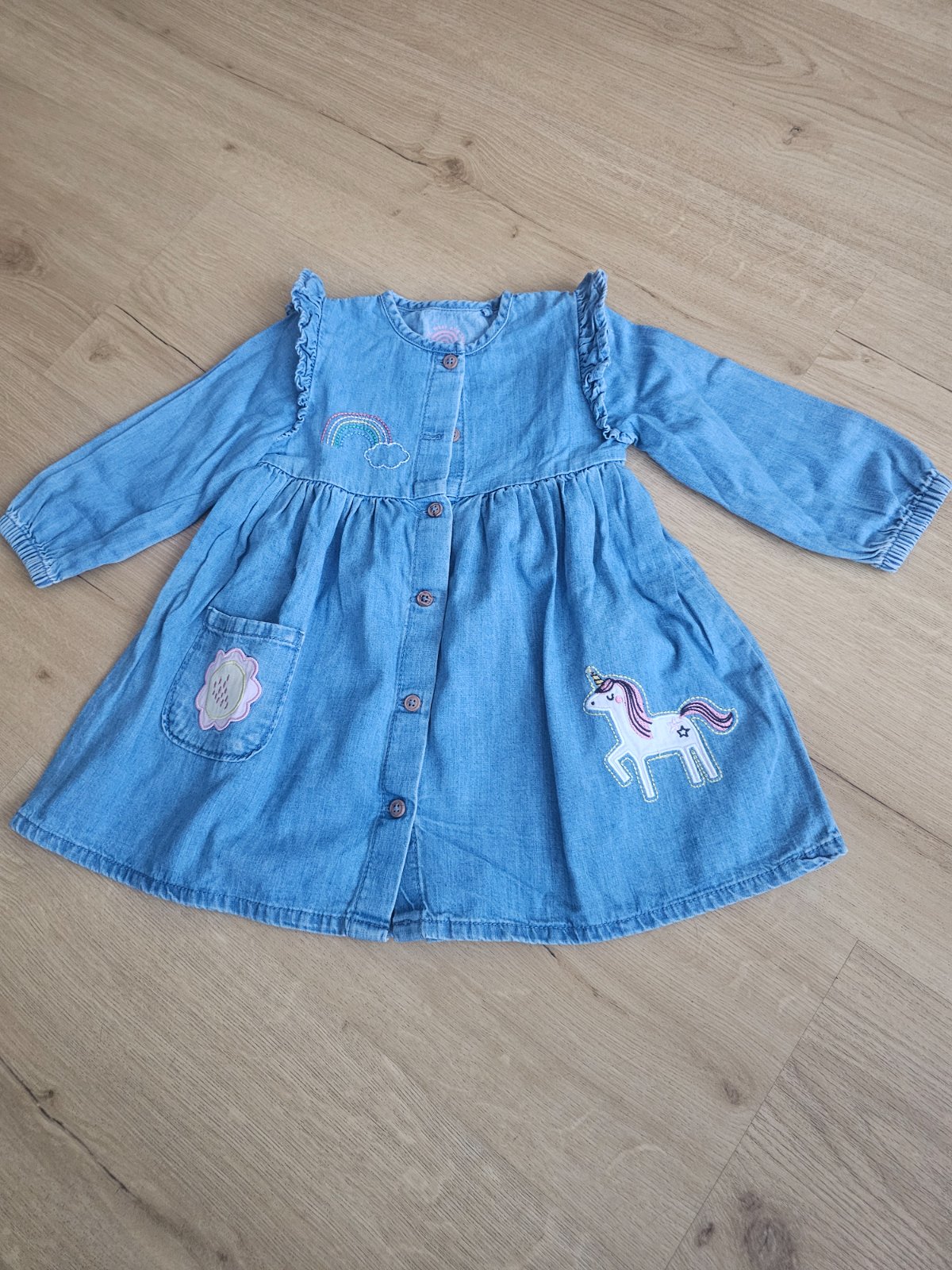Nove nenosene saty, velkost 18-24 mesiacov. Dlzka rukava 33 cm, dlzka siat 48 cm, sirka popod pazuchy 26 cm..