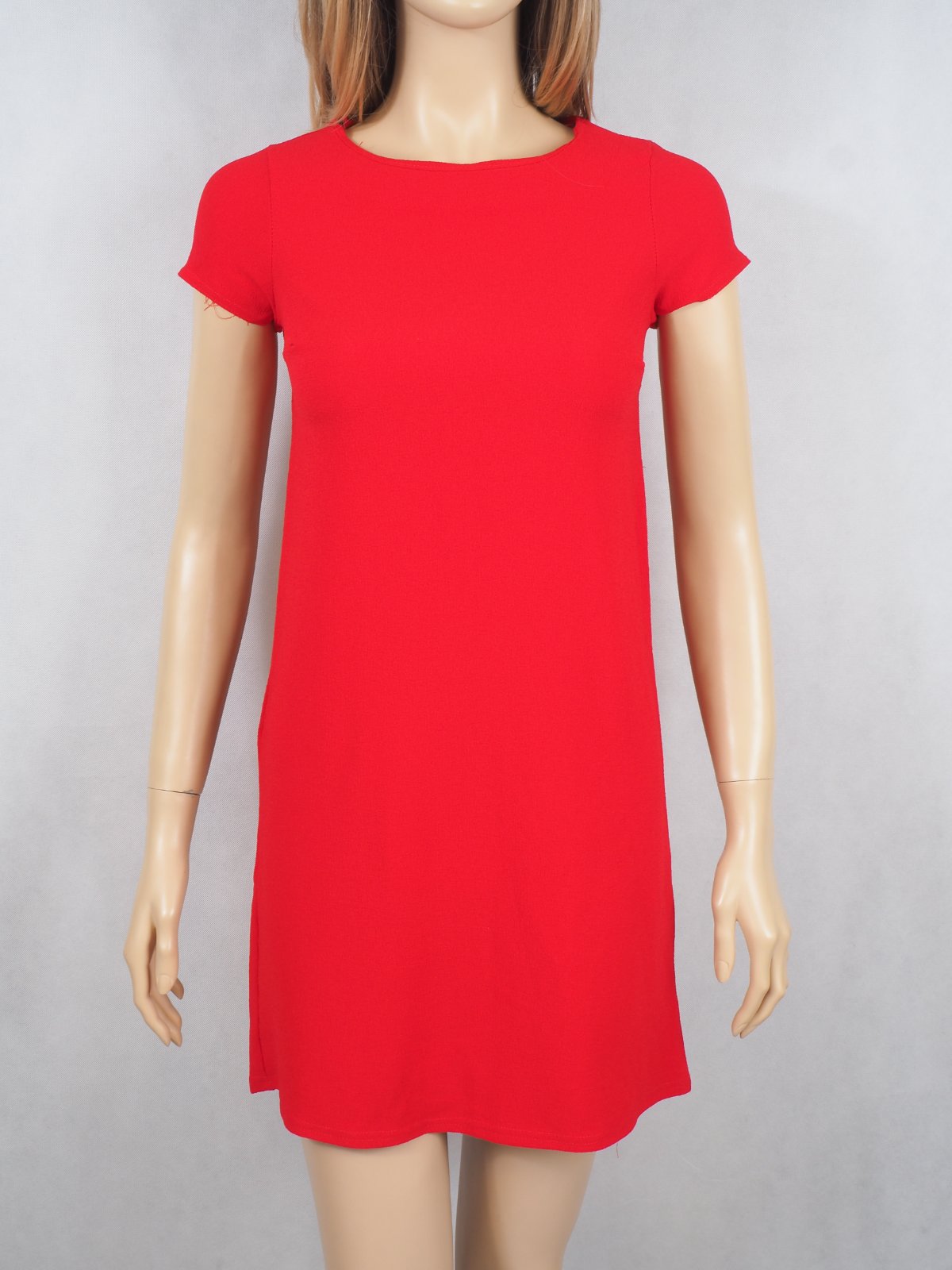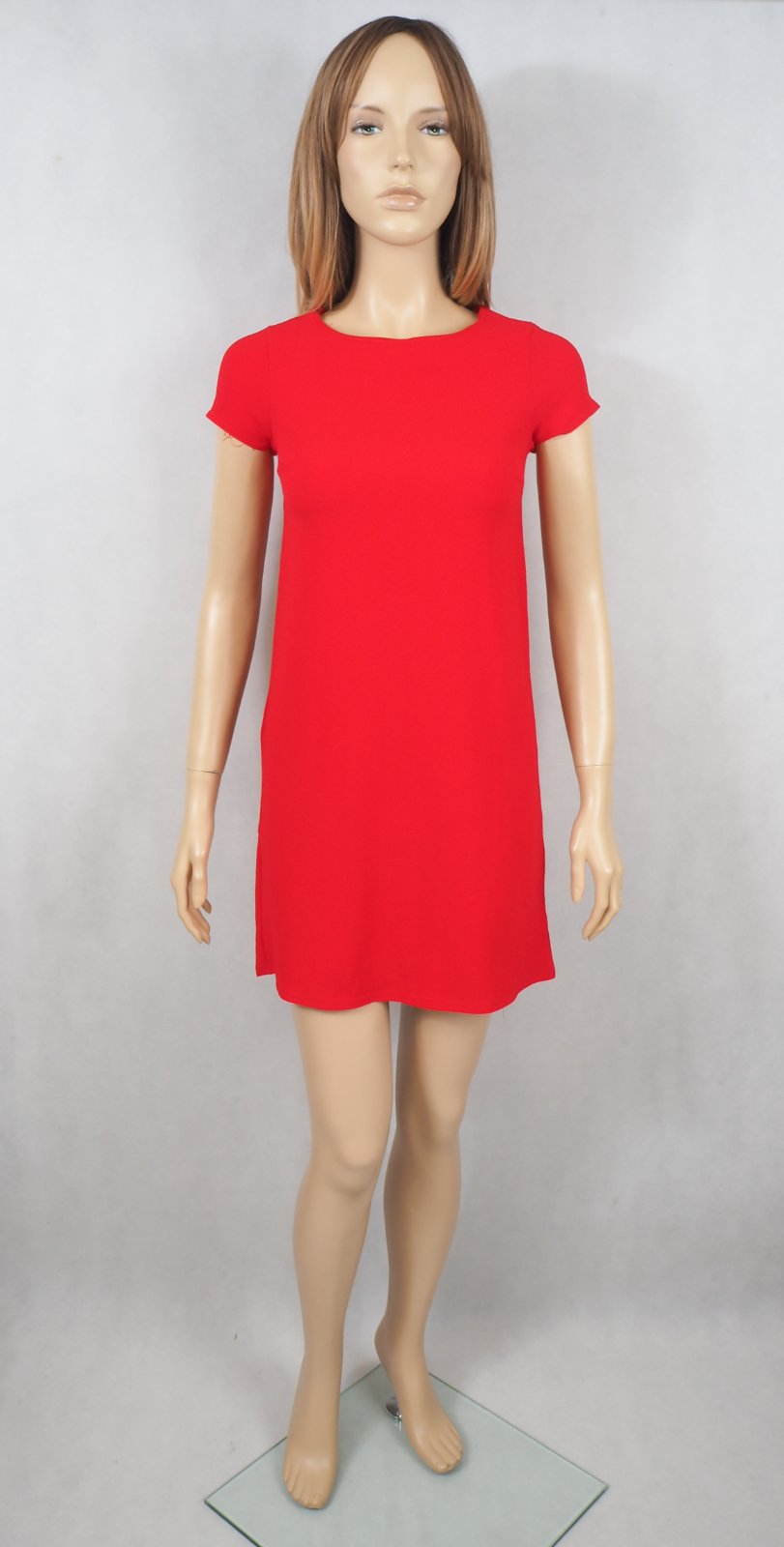 Kvalitné letné šaty červenej farby, bez podšívky, zapínanie vzadu na gombík, materiál 100% viskóza, super stav.