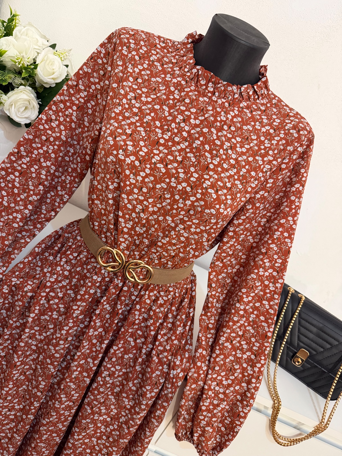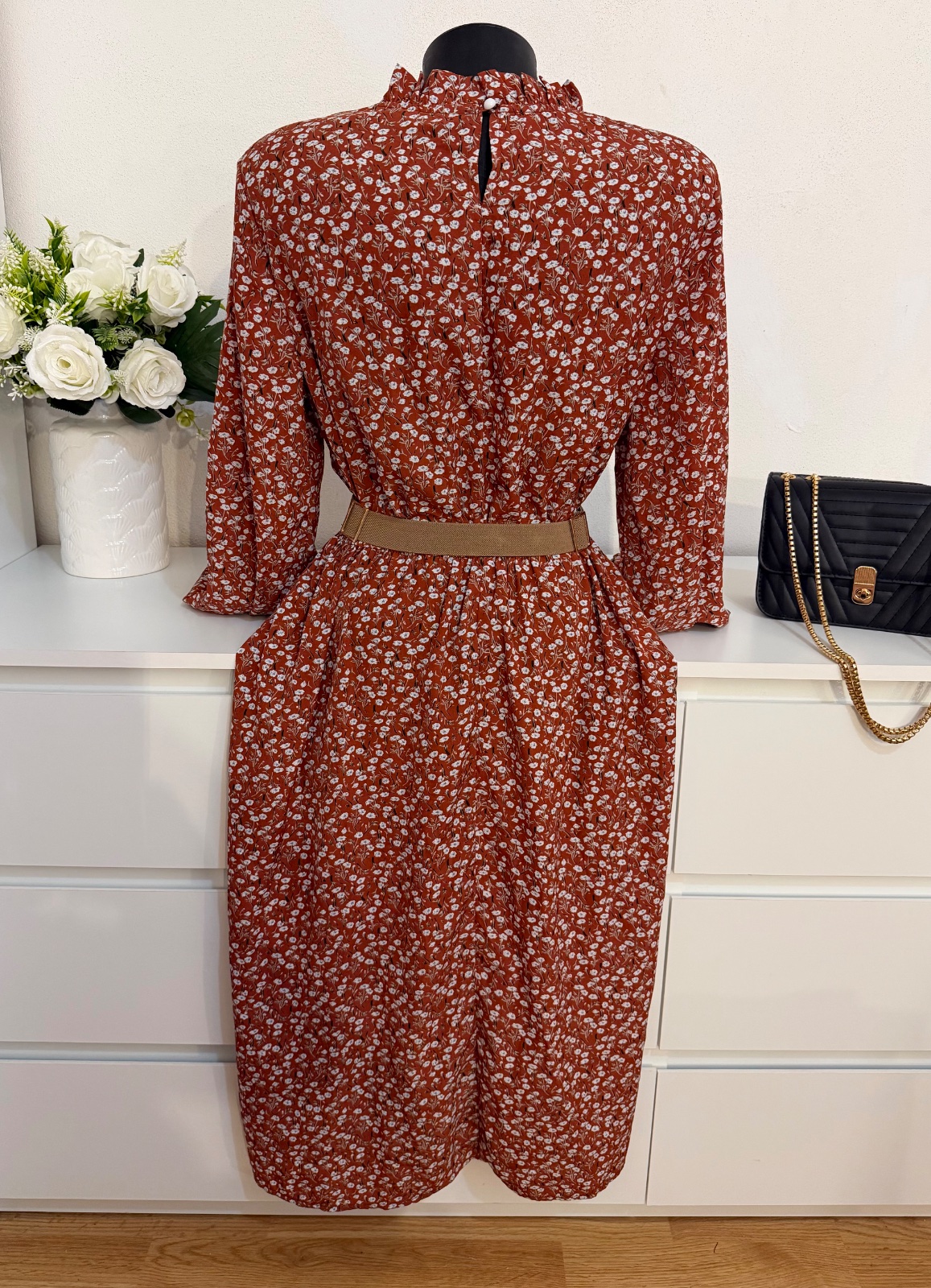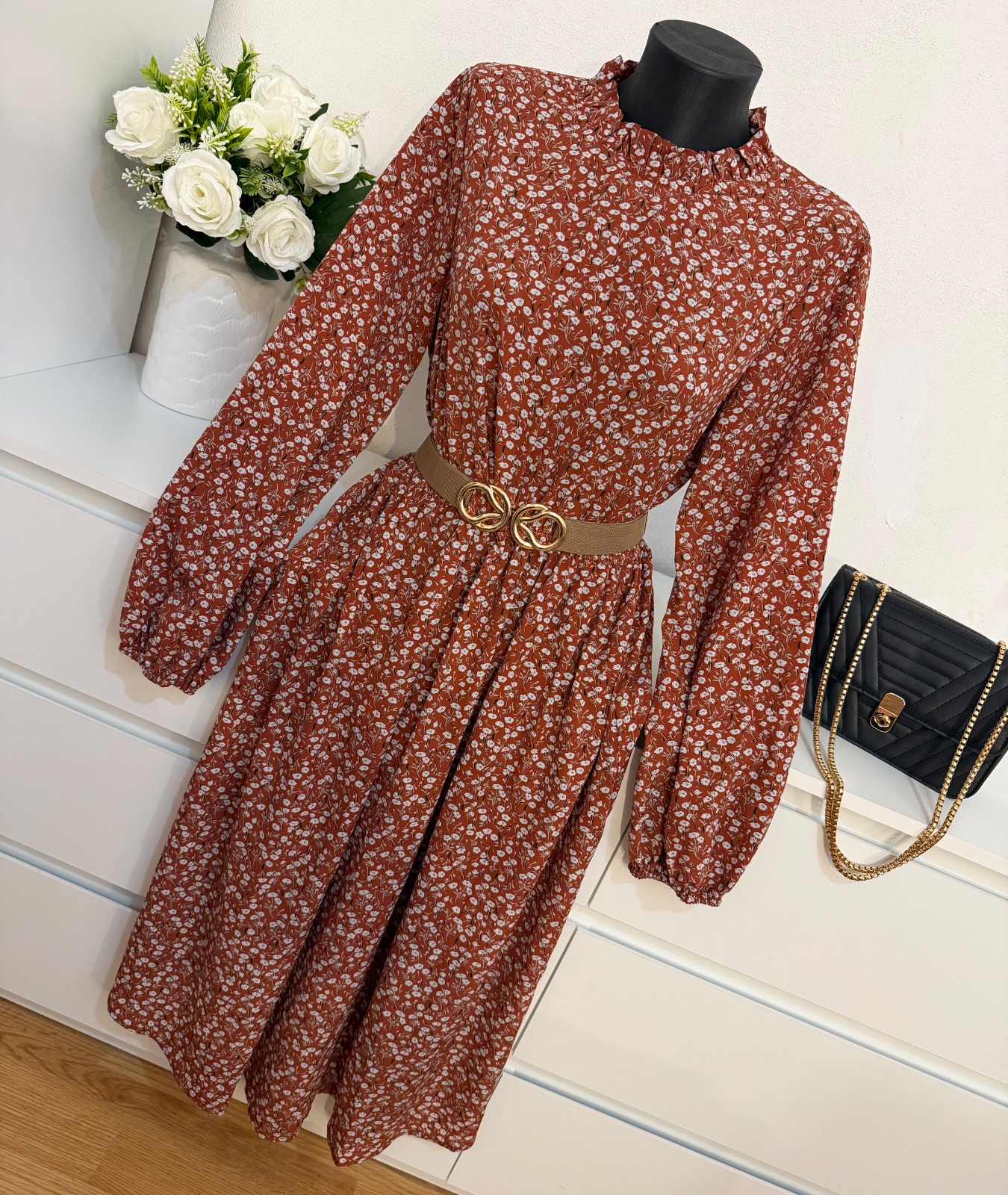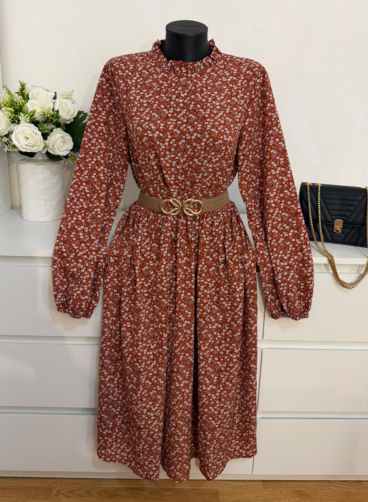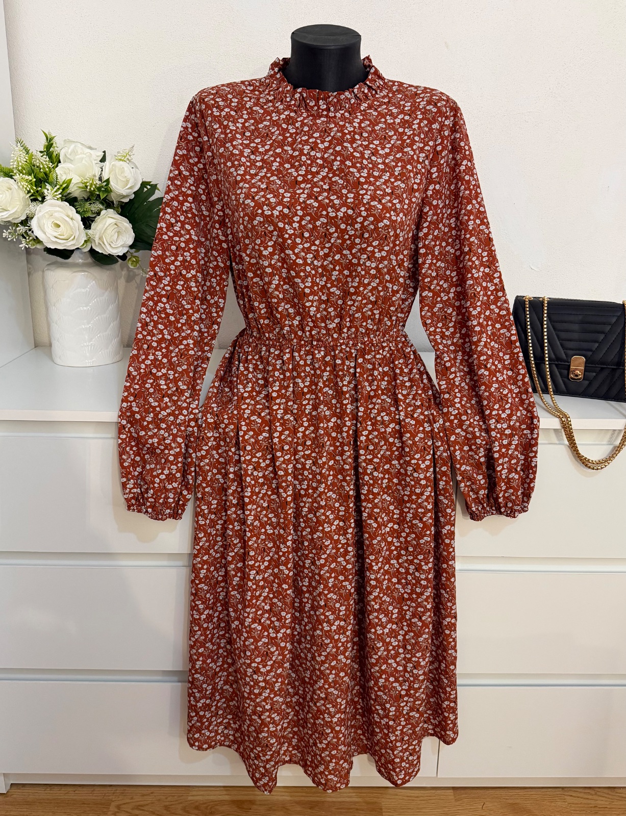Nádherné romantické šaty v teplom hnedo-terakotovom odtieni s jemným kvetinovým vzorom 🤎