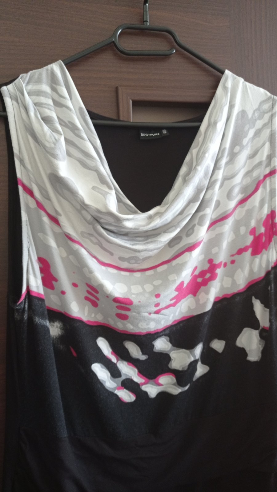 Predám krásne letné šaty zn.Bodyflirt velkost 44-46, na bežné nosenie i akúkoľvek príležitosť, majú vodopádovy výstrih, elastický príjemný materiál, zadný diel čisto čierny, top stav, oblečené raz