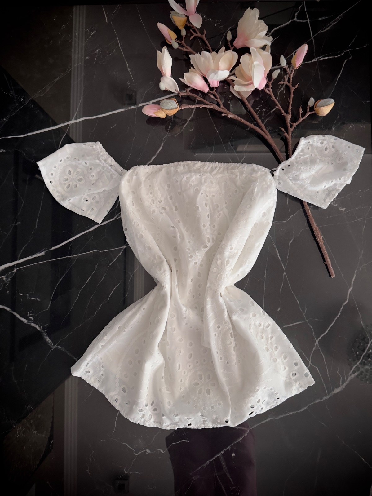 Madeirové biele šaty, s rukávikmi na šnúrke, top stav, 2x na sebe na dovolenke.