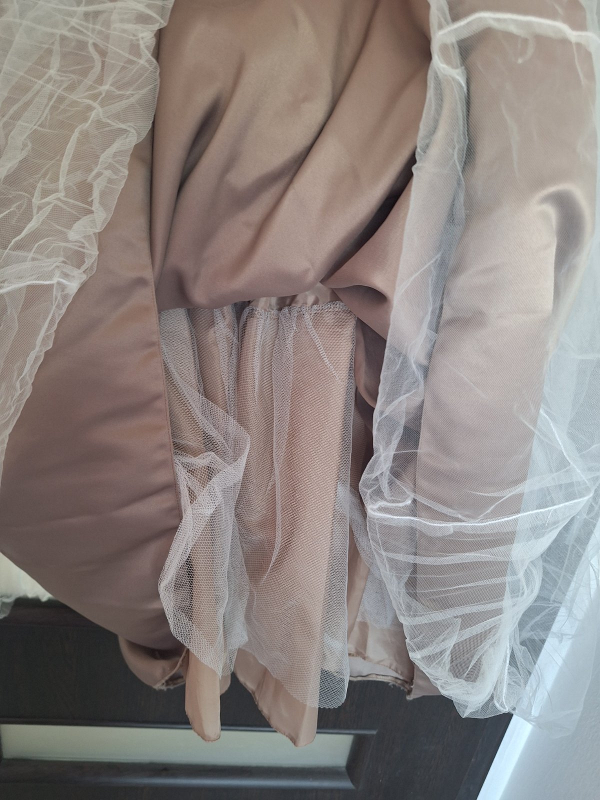 Mali sme ich 1x na svadbe, sú ťažšie keďže je tam dvojitá sukňa, vrchná je tylova, a ma to aj spodničku, materiál akoby satén krásne stoja, po bokoch sme museli trošku zošit moja slečna bola dosť chudá a
