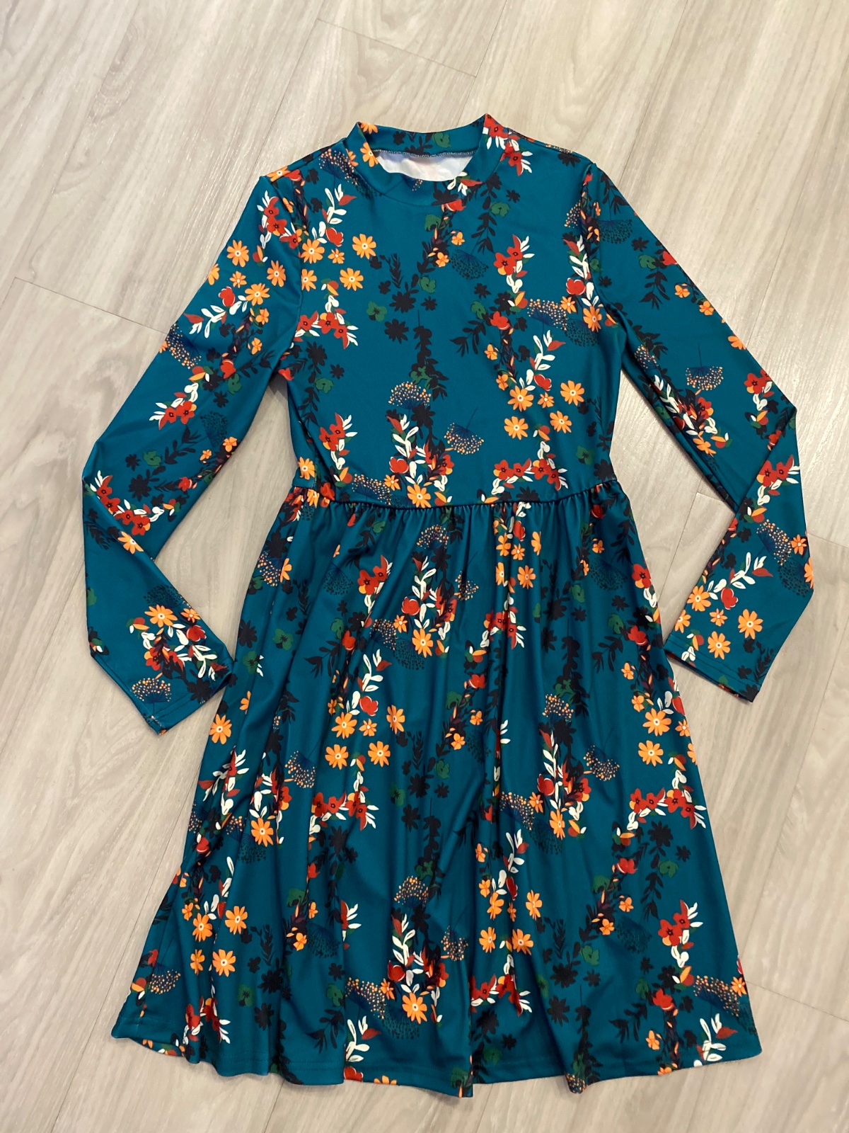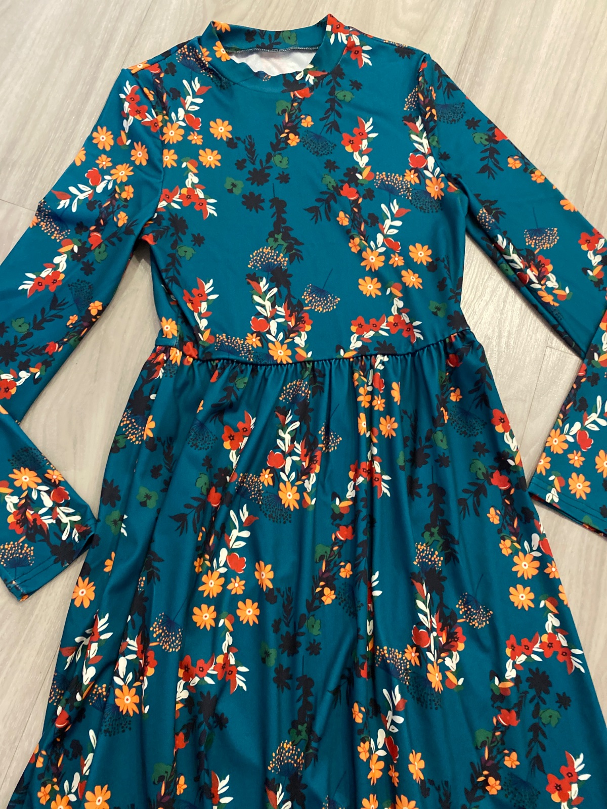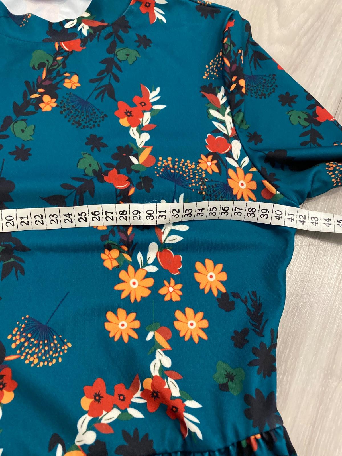 Pekné šaty v top stave. Obsahujú elastan, sú pružné. Vo veľkosti S. Rozmery aj materiál na fotkách. Farba je skôr do zelena, nie do modrá, foťák skresľuje. Odporúčam.
