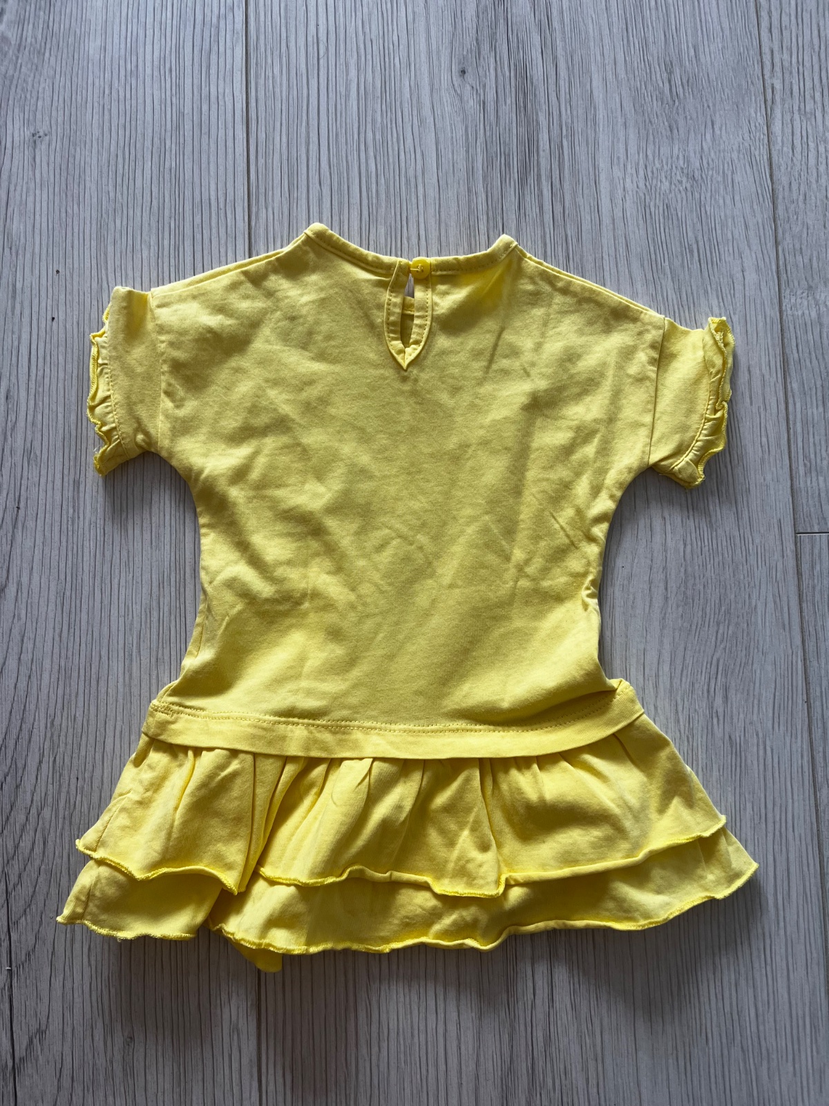 Predám vo výbornom stave žlté šaty s volanmi ozdobené striebornými gulickami. Značka: Primigi, veľkosť: 62 (6 mesiacov)