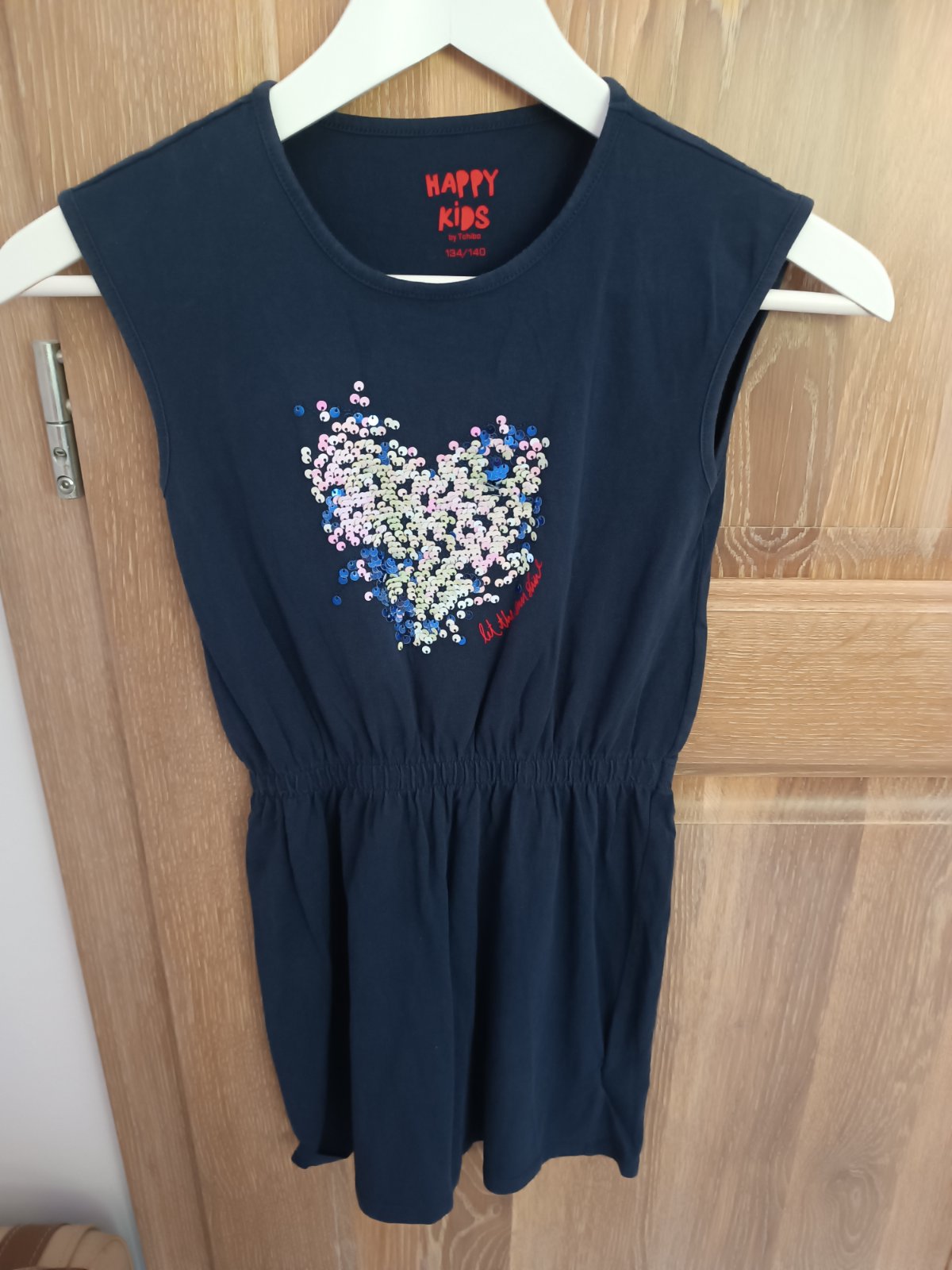 Pohodlne šaty po dvoch dievčatách. Bez poškodenia. 134/140