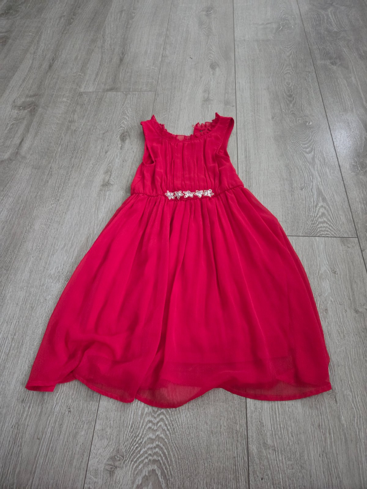 SKLADOM Šifónové plisované šaty zn. Rare Editions ozdobené zlatým náhrdelníkom. Až do veľkosti na cca 16 rokov, čo je aj dámske M. Zladíte sa MAMA + DCÉRKA. Kód E423937. 7 (116-122) - dĺžka 70 c...