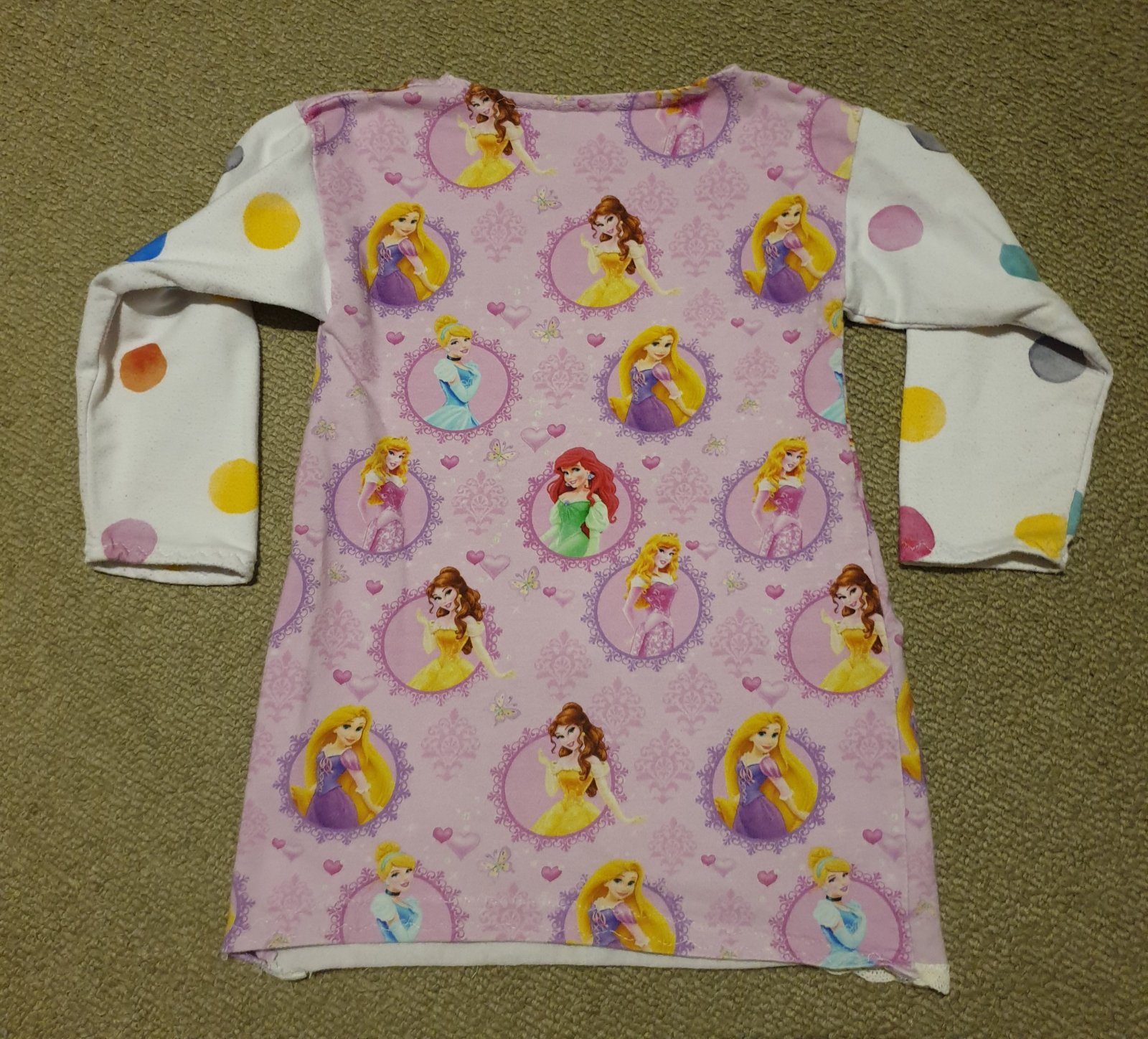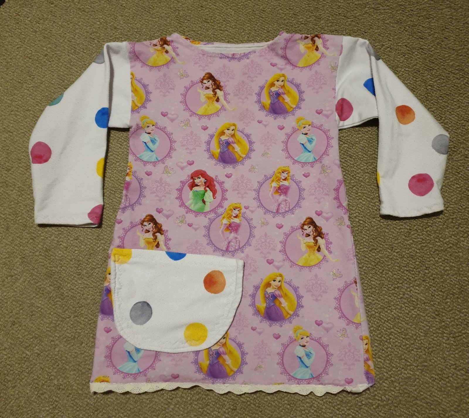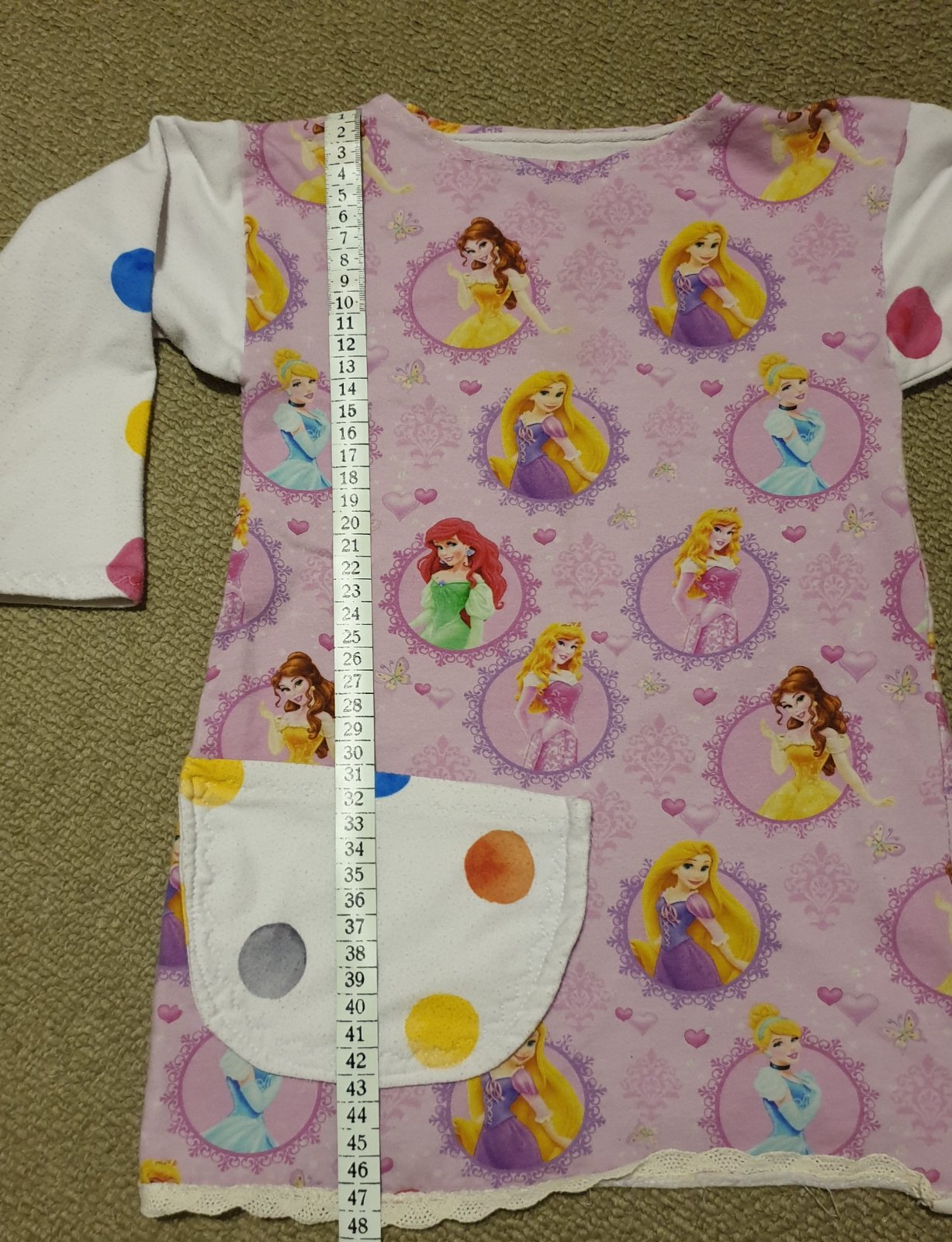 Šité šaty s Disney princeznami. Nosené, na rukávoch žmolky.