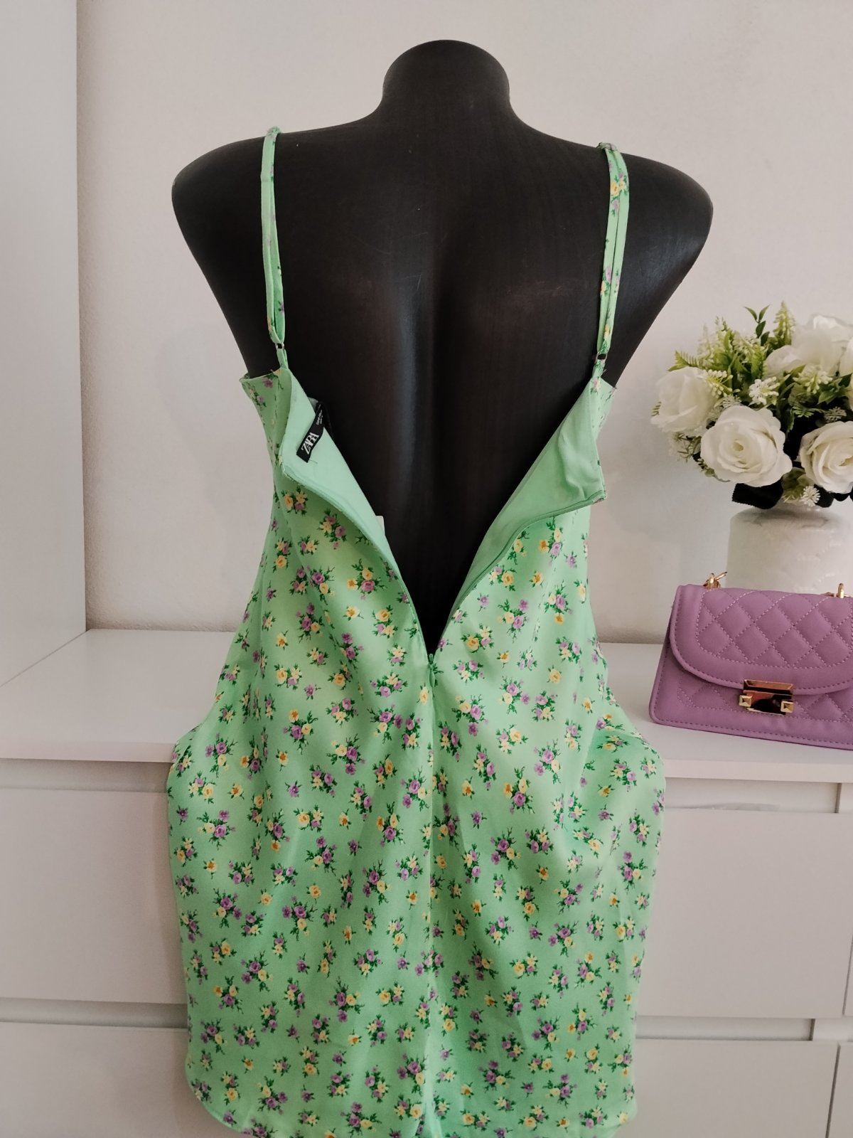 Nádherné, ženské mini šaty značky ZARA v sviežej pastelovo-zelenej farbe s jemným kvetinovým vzorom 💚🌸