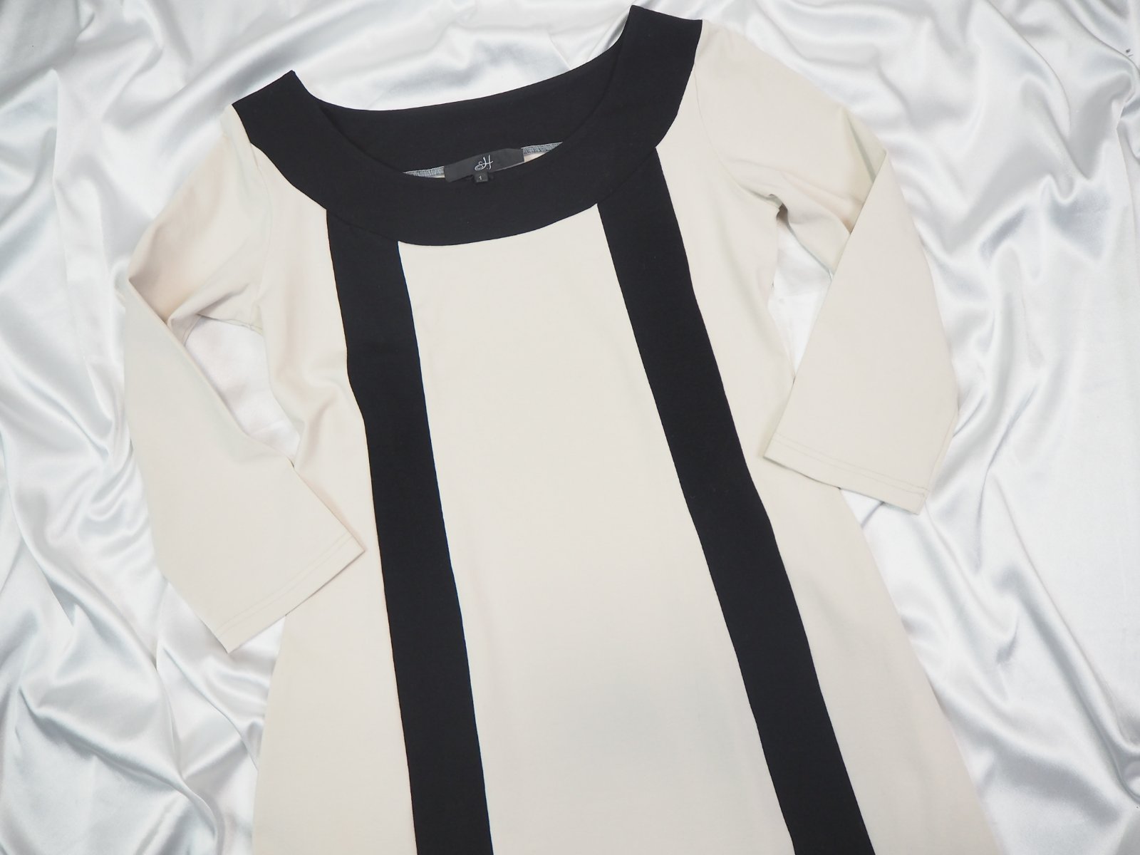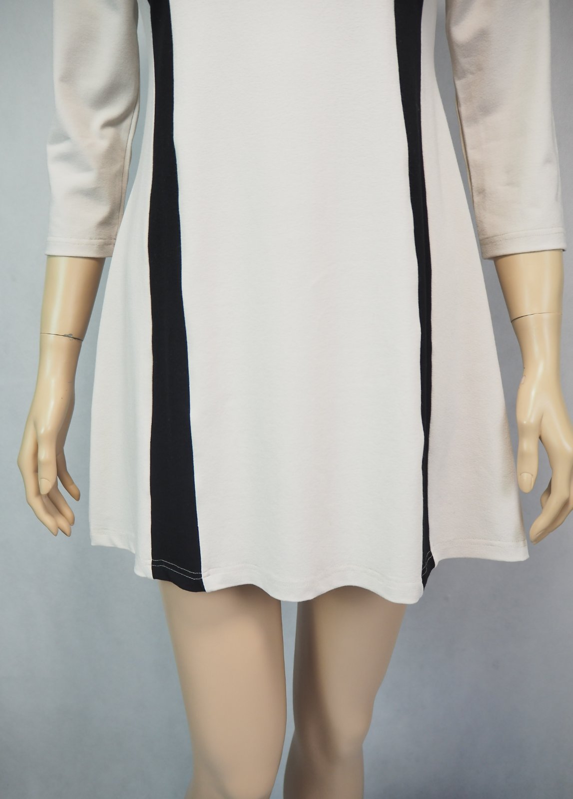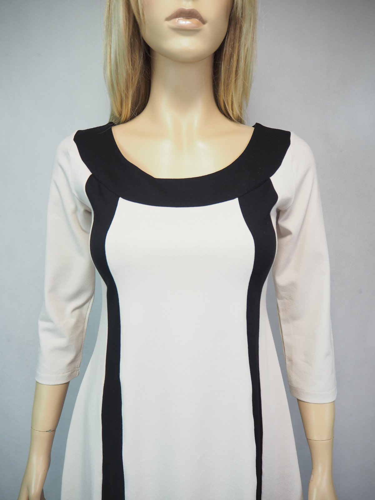Luxusné dámske úpletové šaty béžovo-čiernej farby, bez podšívky, materiál 92% viskóza, 8% elastan, super stav.