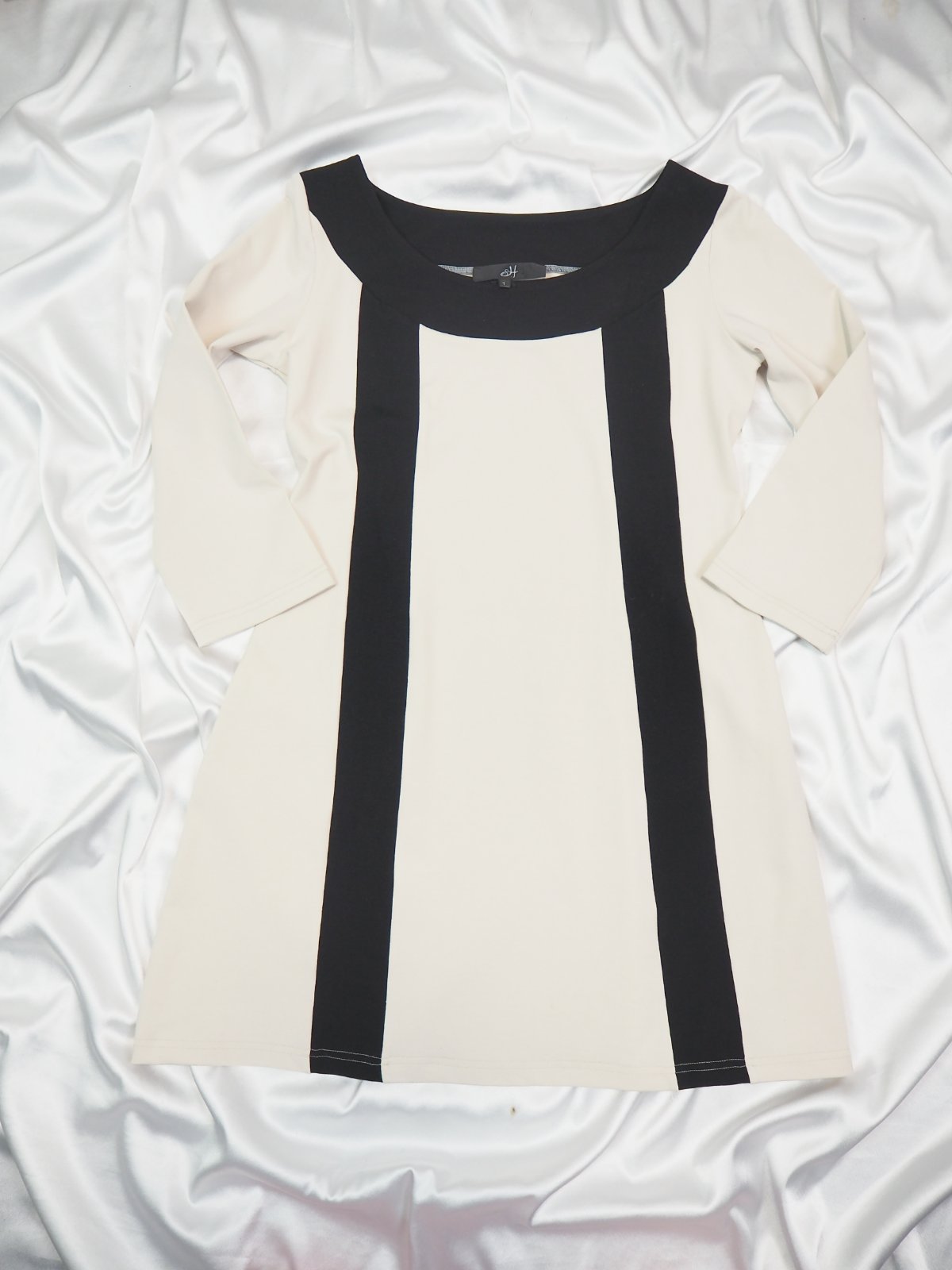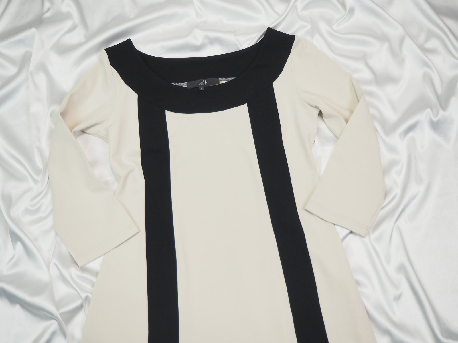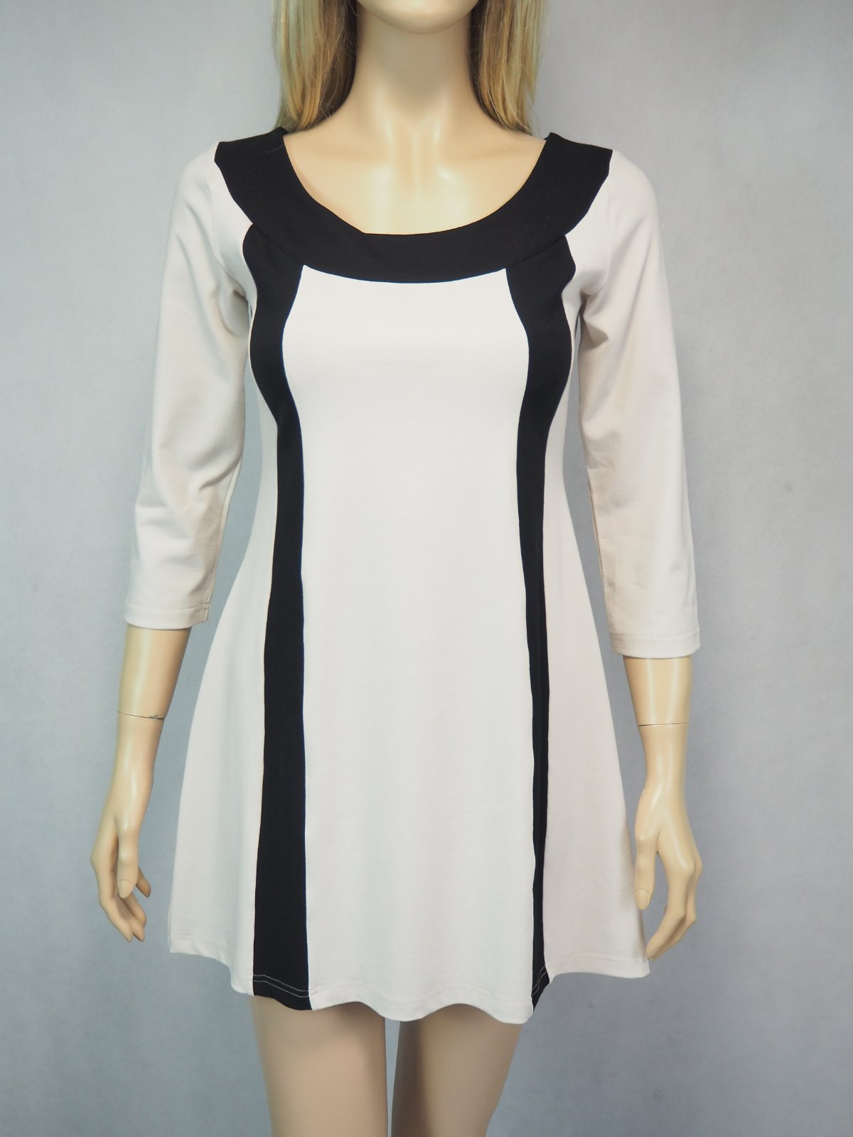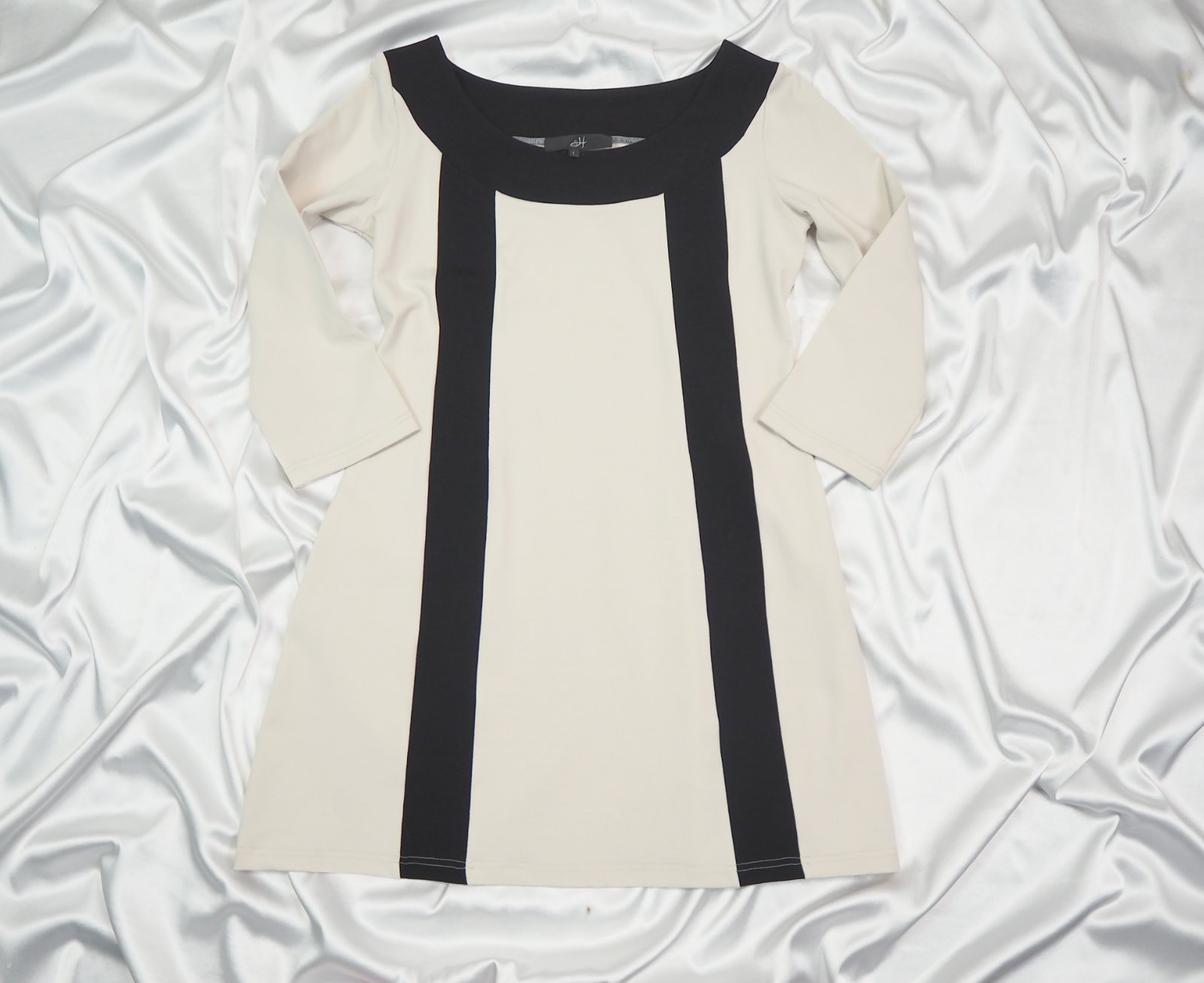 Luxusné dámske úpletové šaty béžovo-čiernej farby, bez podšívky, materiál 92% viskóza, 8% elastan, super stav.