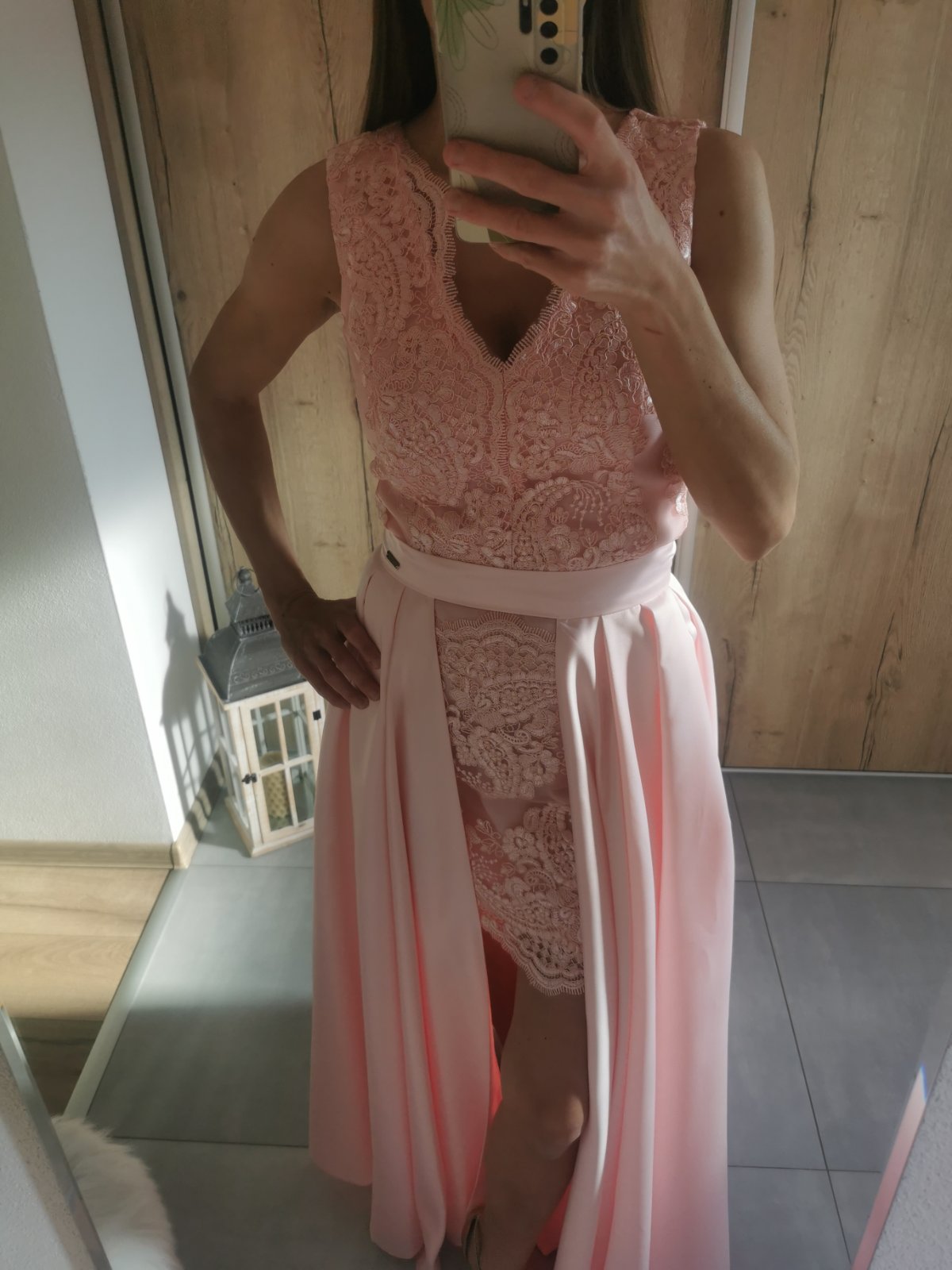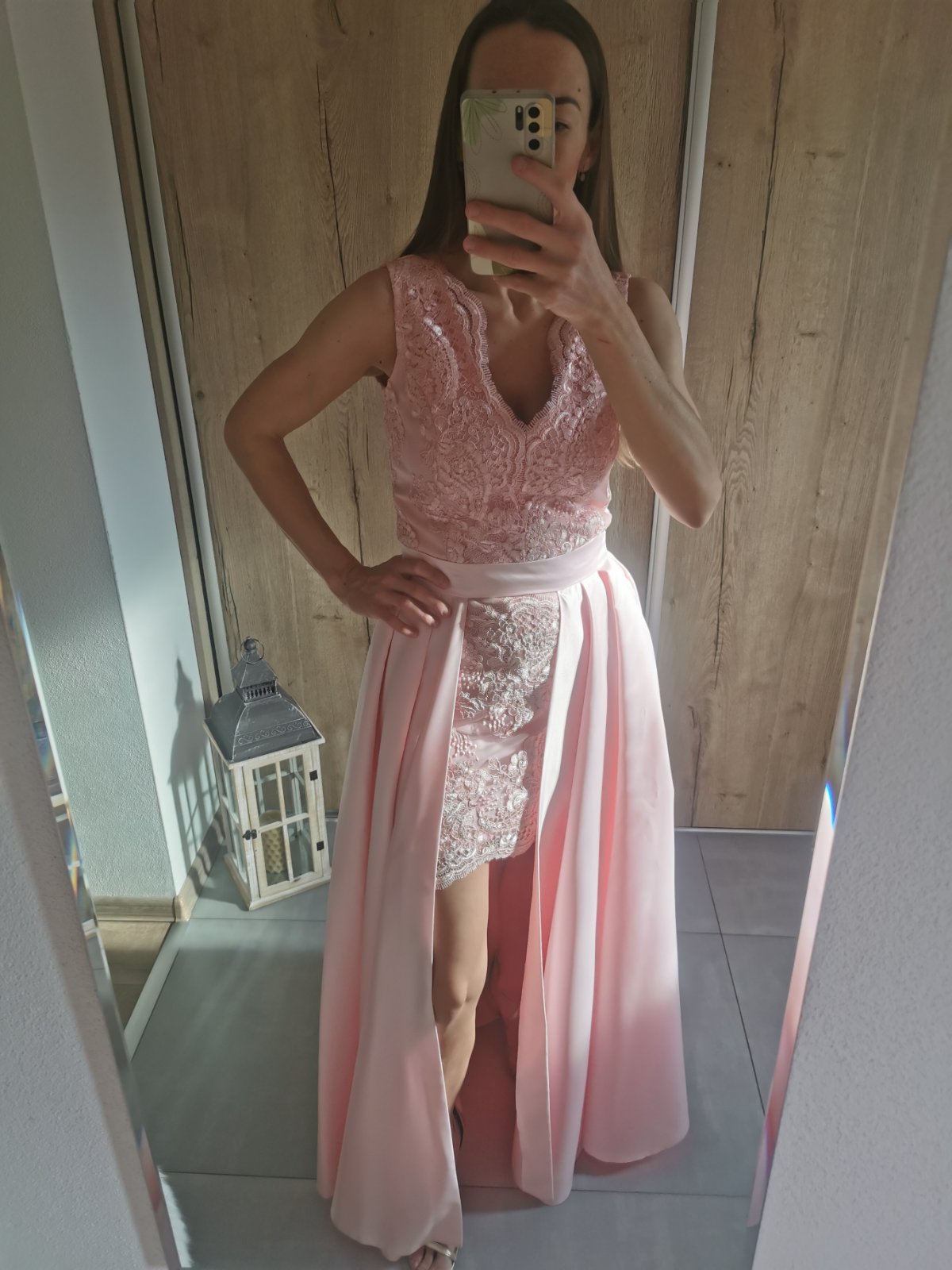 Nadherné šaty oblečené 1krat na svadbe brata na živo farby krajšie ako na foto na šatách su trblietave ružičky povodna cena 170e velkost je M obvod asi 36 premeriam ku šatám mam aj doplnky aj kab...