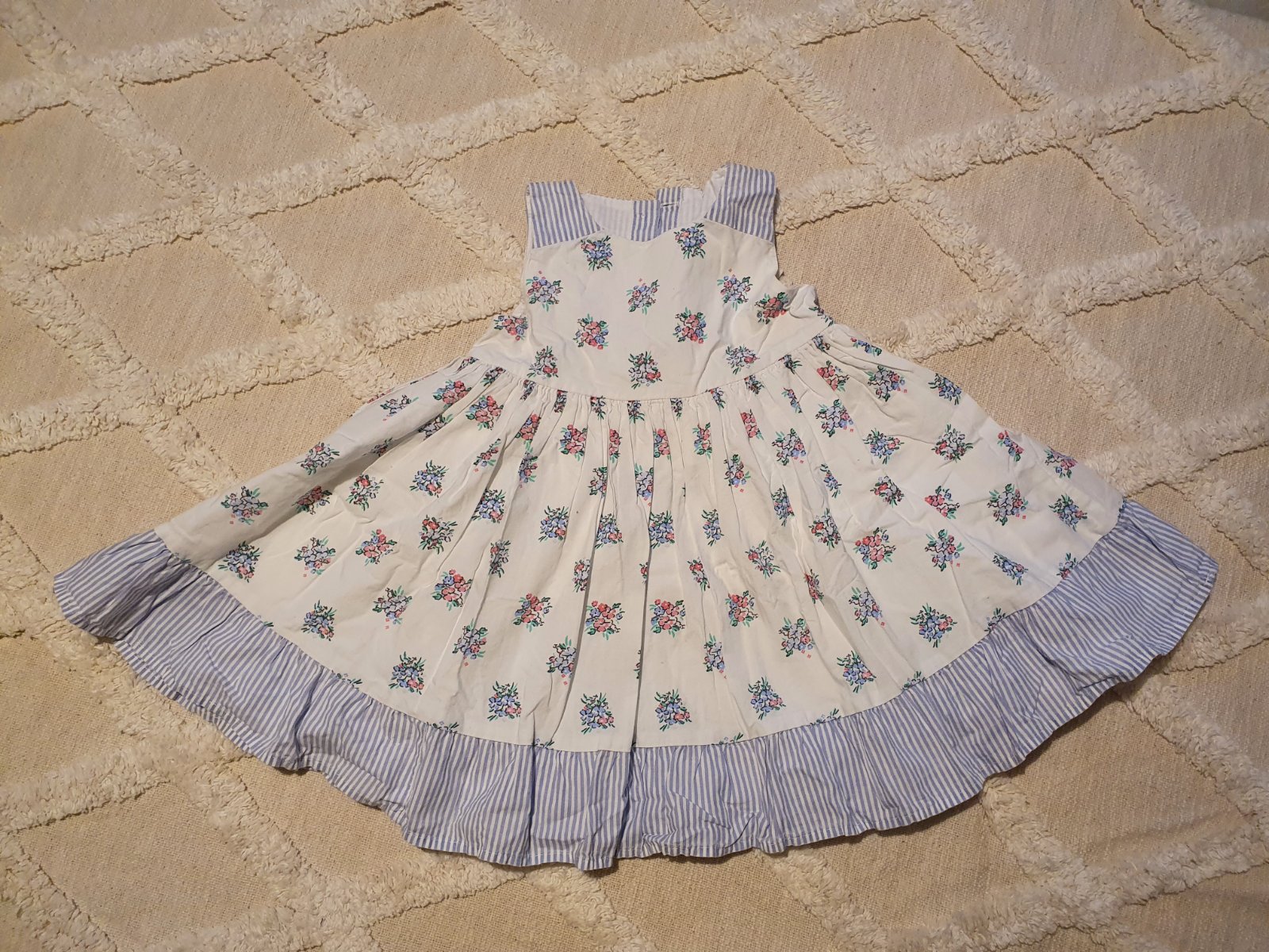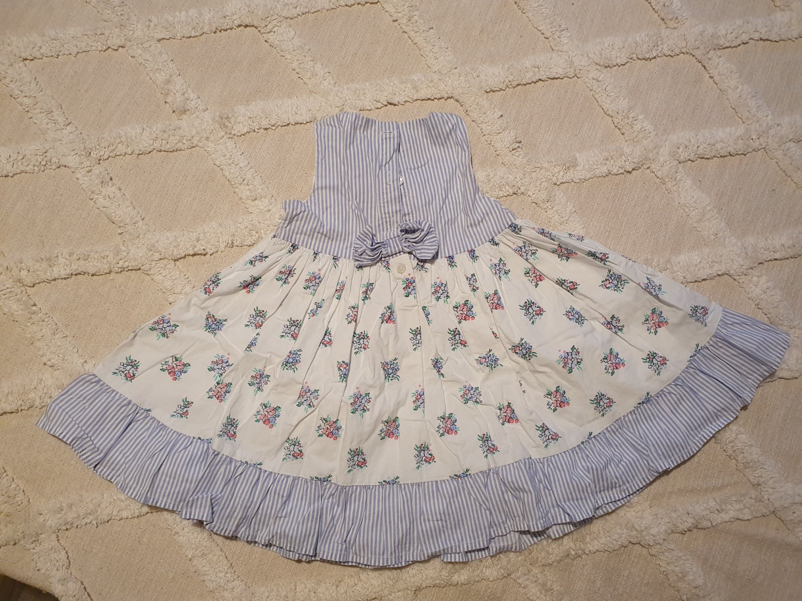 Predám krásne letné šaty so spodnou sukňou, vďaka ktorej má sukne pekný hustý tvar. Vzadu mašlička. Materiál bavlna, veľkosť 80-86. Málo nosené, bez poškodenia. Cena bez poštovného.