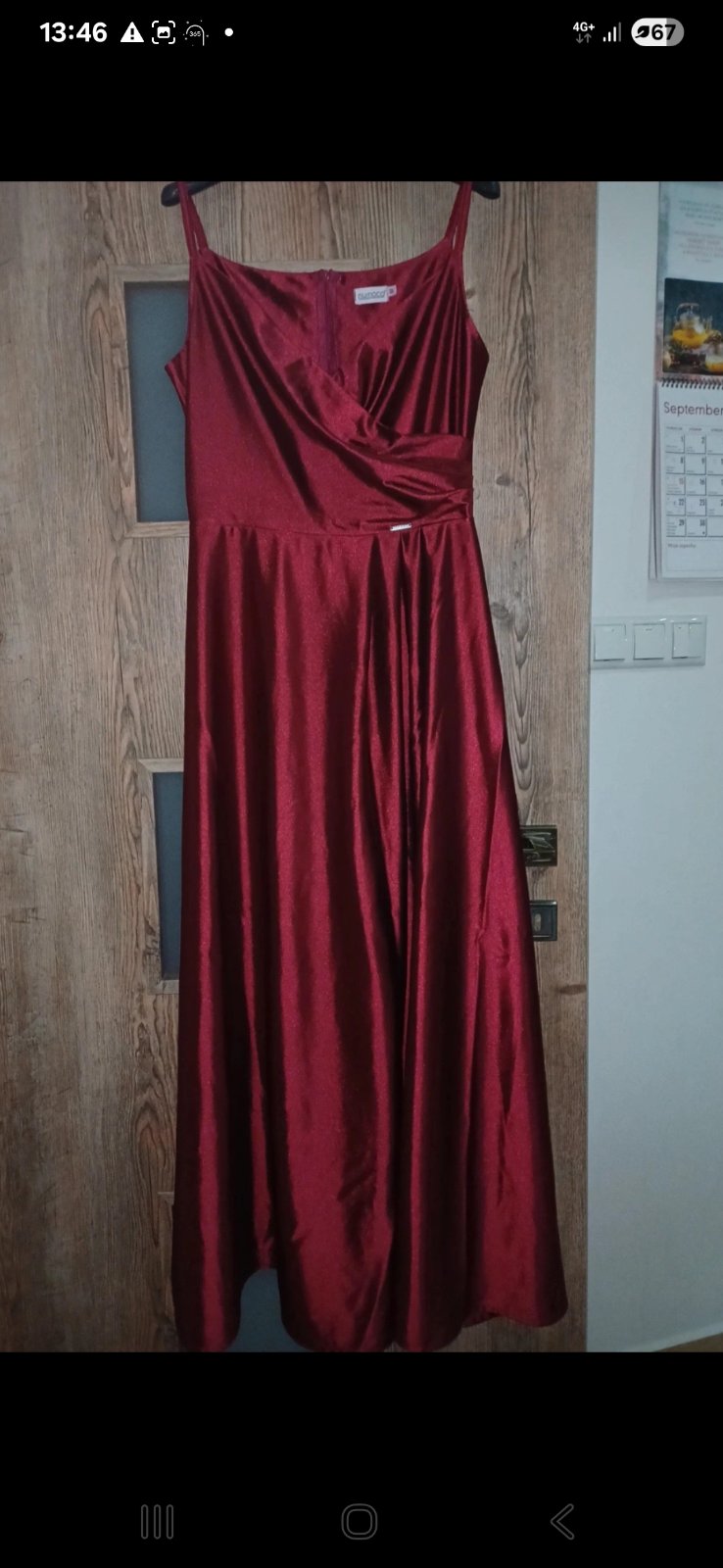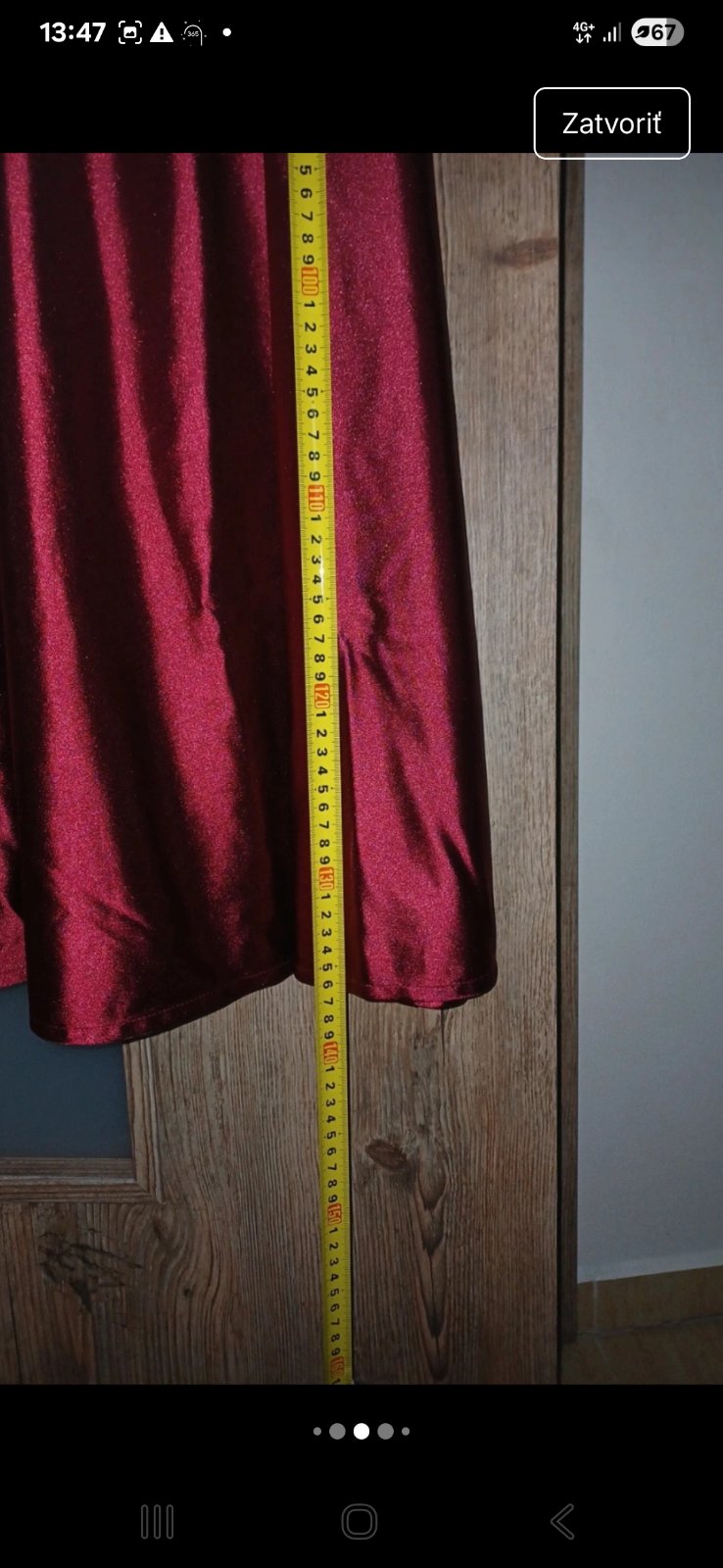Raz oblečené, hrubší satén, rozparok zašitý, dá sa upraviť. Veľmi pekne ukážu na postave.