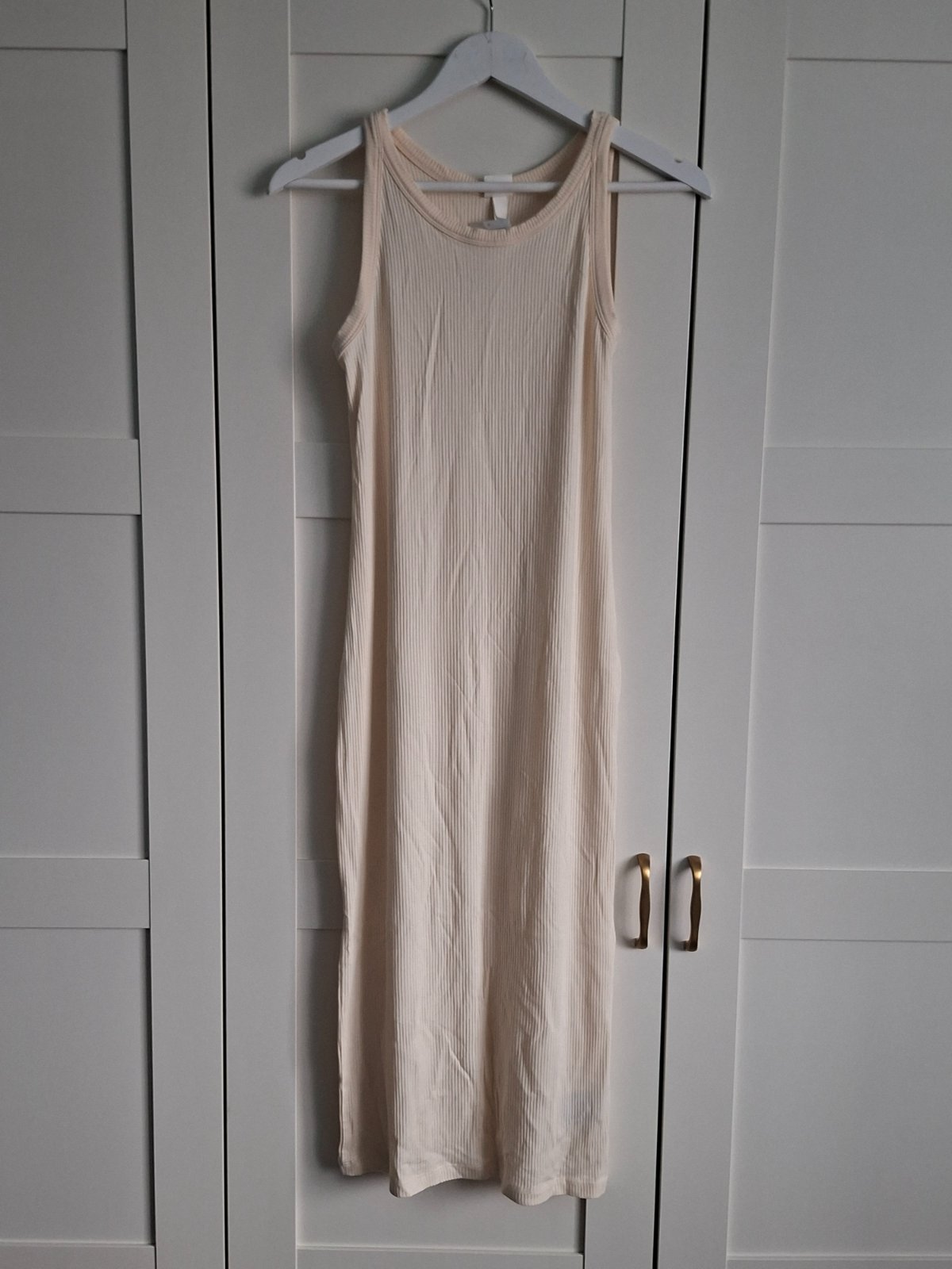Dámske púzdrové krémové šaty s okrúhlym výstrihom značky H&M. Vzadu trochu odhalený chrbát. Veľkosť S 36. Kúpené v novej kolekcii.