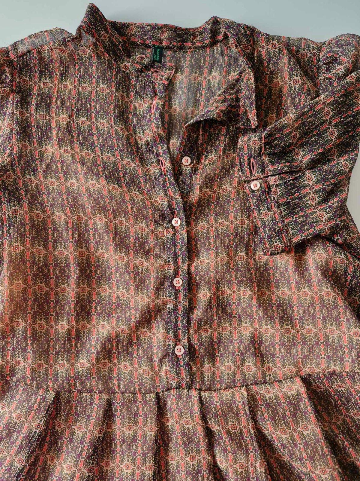 Velmi pekne kvalitne trendy šaty,s potlačou,z mierne elastickeho materialu,vzadu zips.93%polyester,7%elastan.ako nove. se20 Rozmery: vel.36,vel.S,cez prsia 2x49cm,cez boky 2x55cm,dl 75cm V...