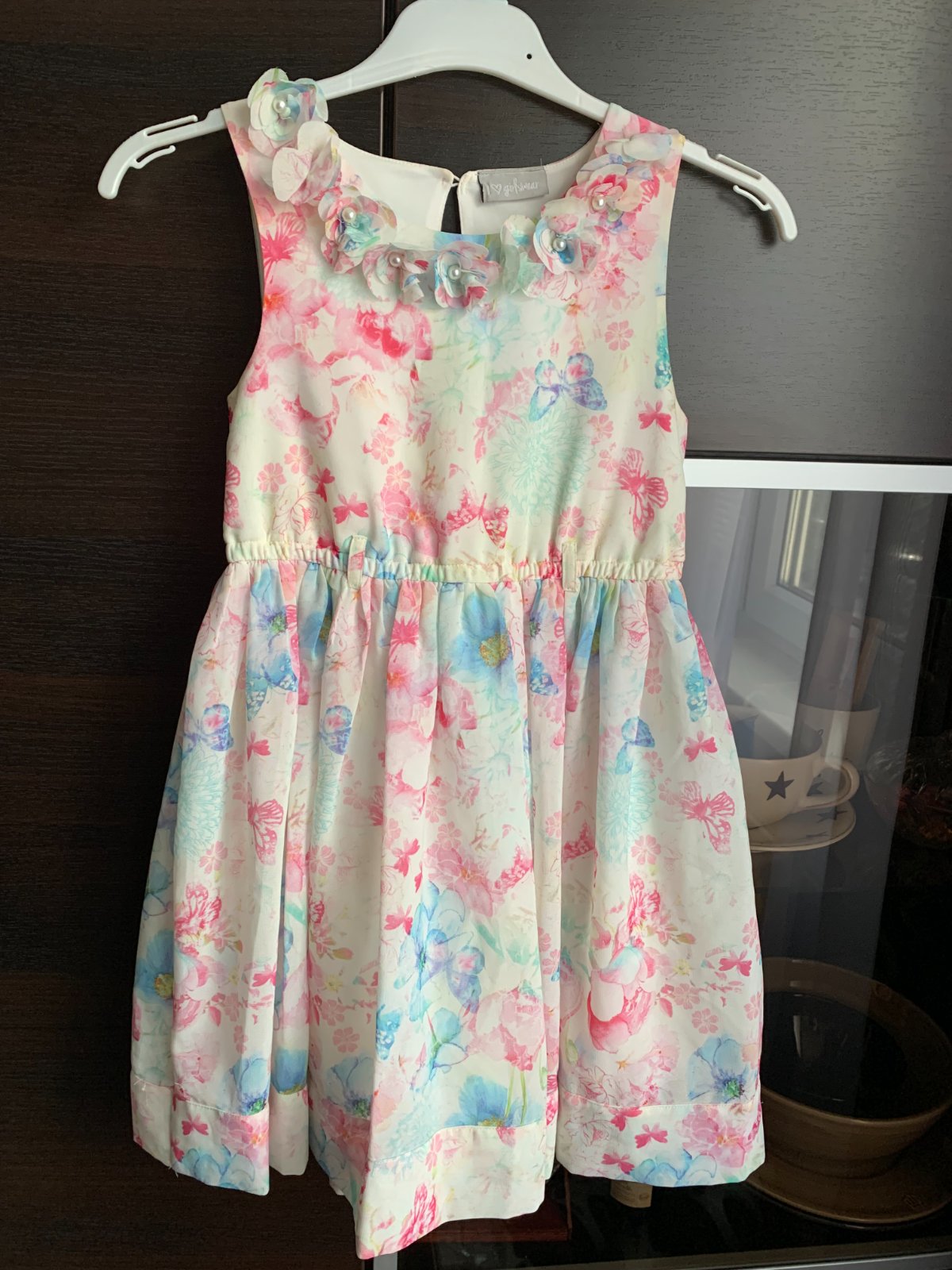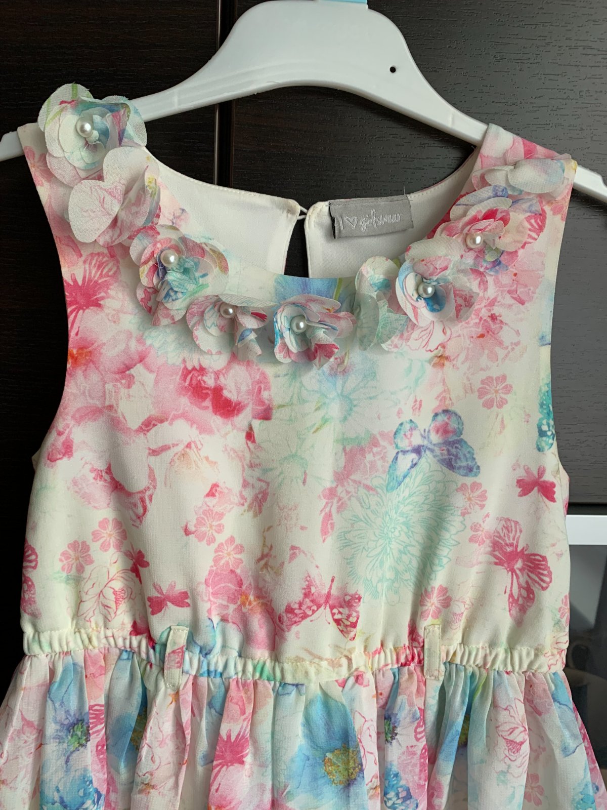 Krásne letné slávnostné šaty, vhodné na oslavu či fotenie do školy. Bez opasku (možnosť pridať, ale nie je nutné).