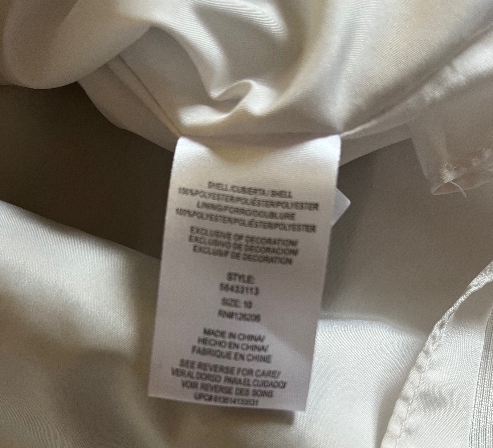Nádherné šaty, 1x oblečené na svadbe. Vrchný materiál je z vysoko kvalitného saténu v bielej farbe. Pás je dekorovaný odstrániteľným kvetom s mašľou- dá sa pripnúť kdekoľvek na pás, alebo ho vôbec ...