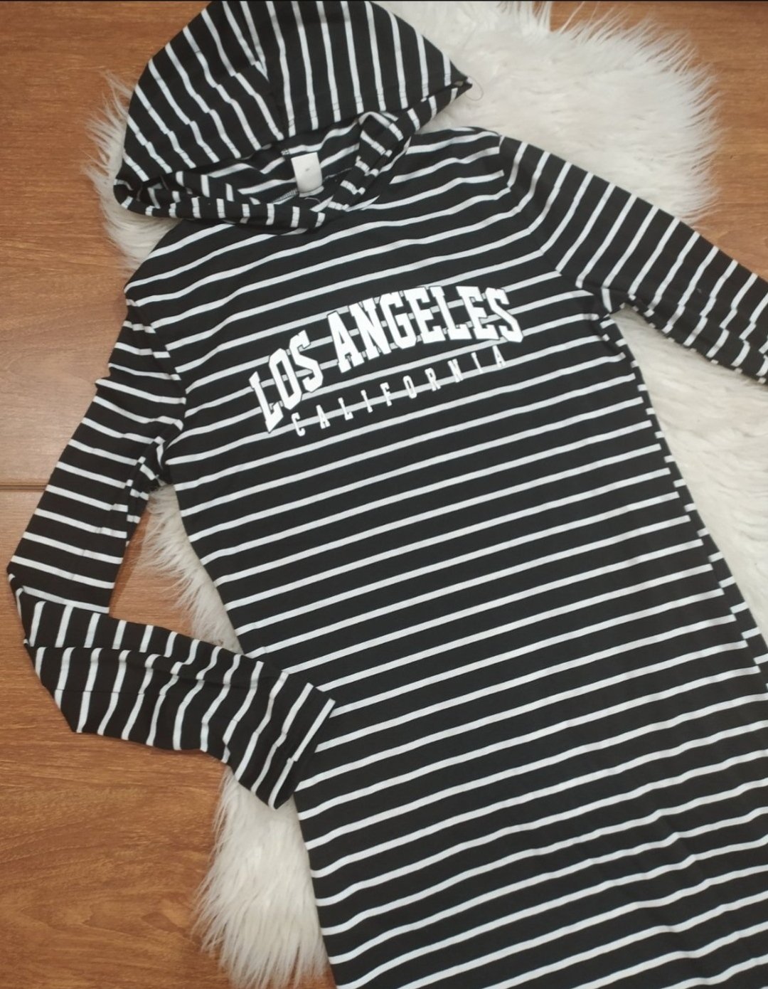 Krásne pasikove šaty s kapucňou ,dĺžka maxi,veľ 152/158