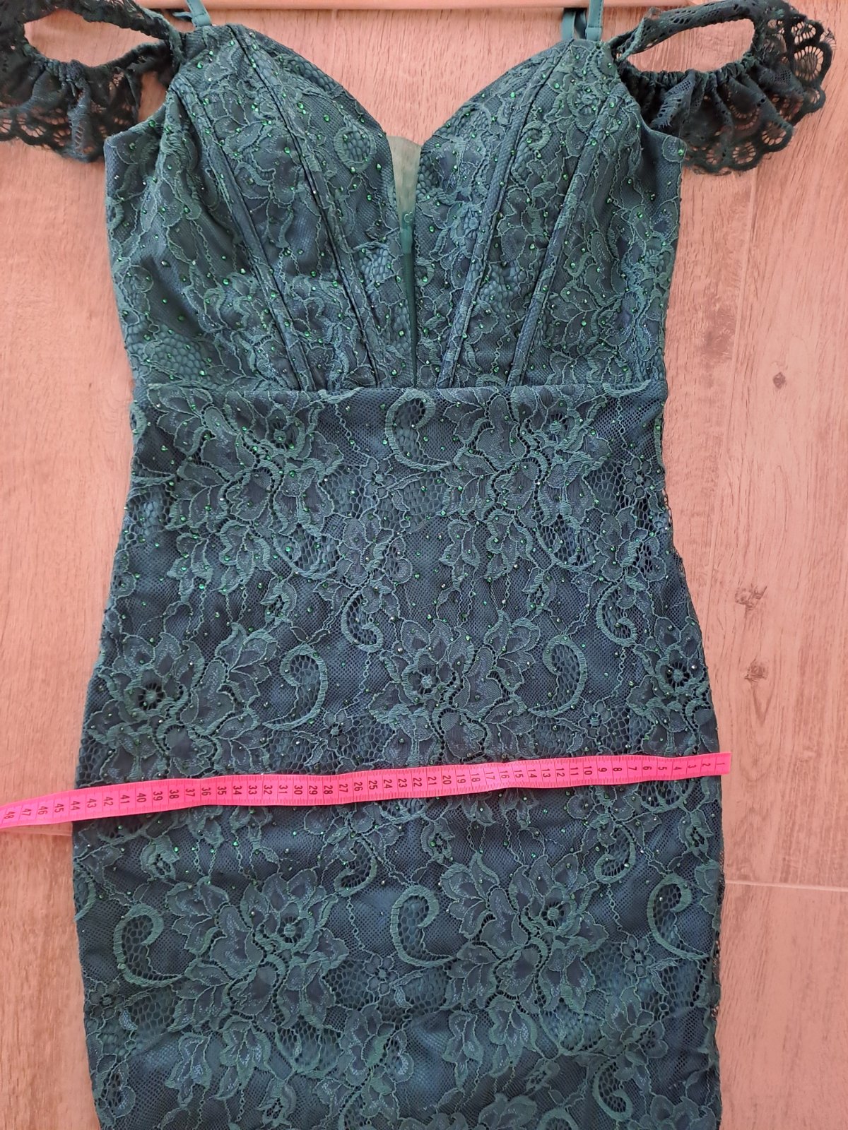 Predam nadherne smaragdovo zelene saty vel. L ale sedia skor na M. Ja som ich nemala az tak priliehave, su vsak velmi pruzne, krajka je este celopodsita. Dlzku si treba upravit/skratit podla vysky.