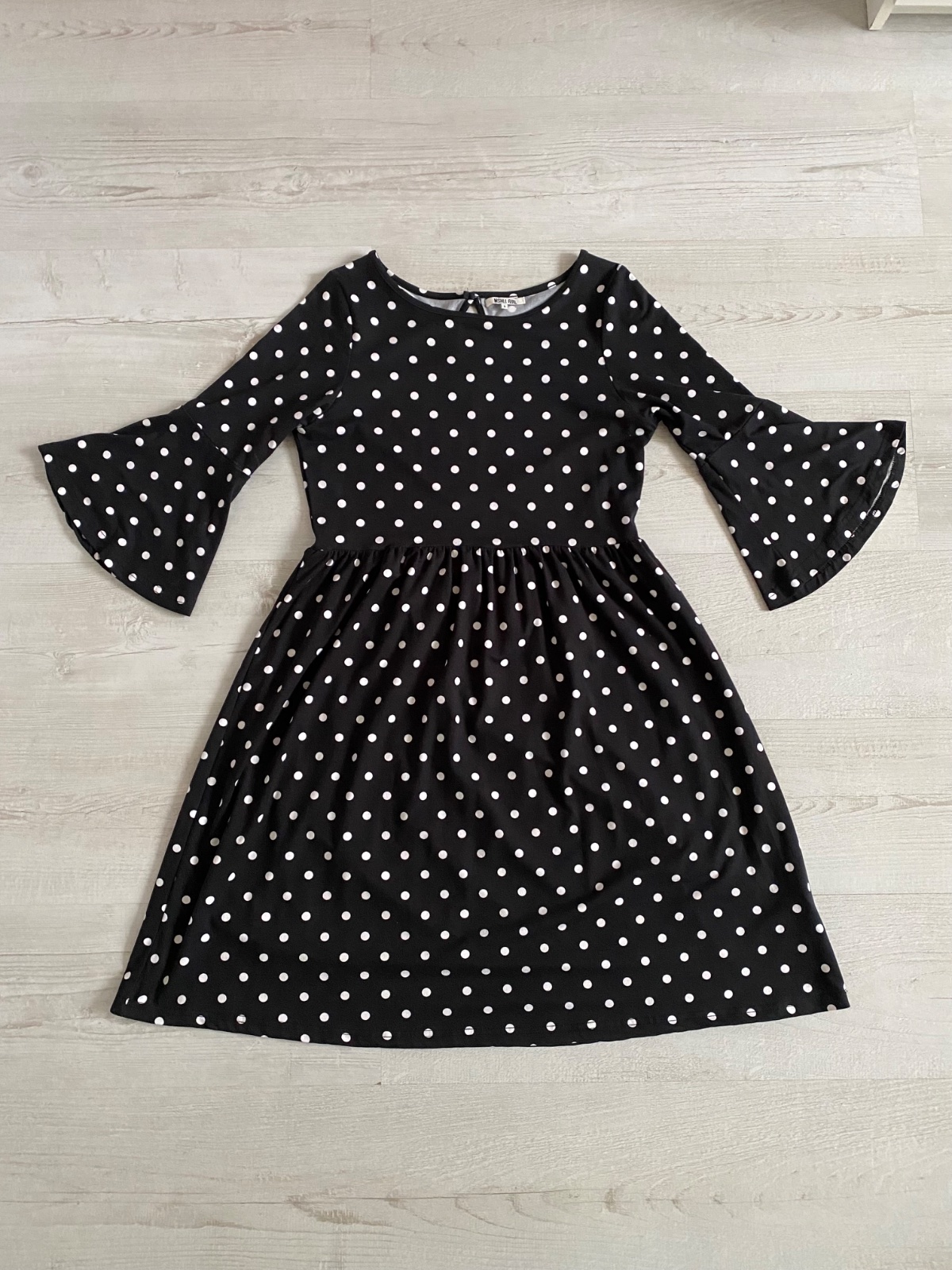 Veľmi pohodlné jarné šaty. Nazbierané rukávy, na ramenách sú malé vypchavky. Rozmery na foto.
