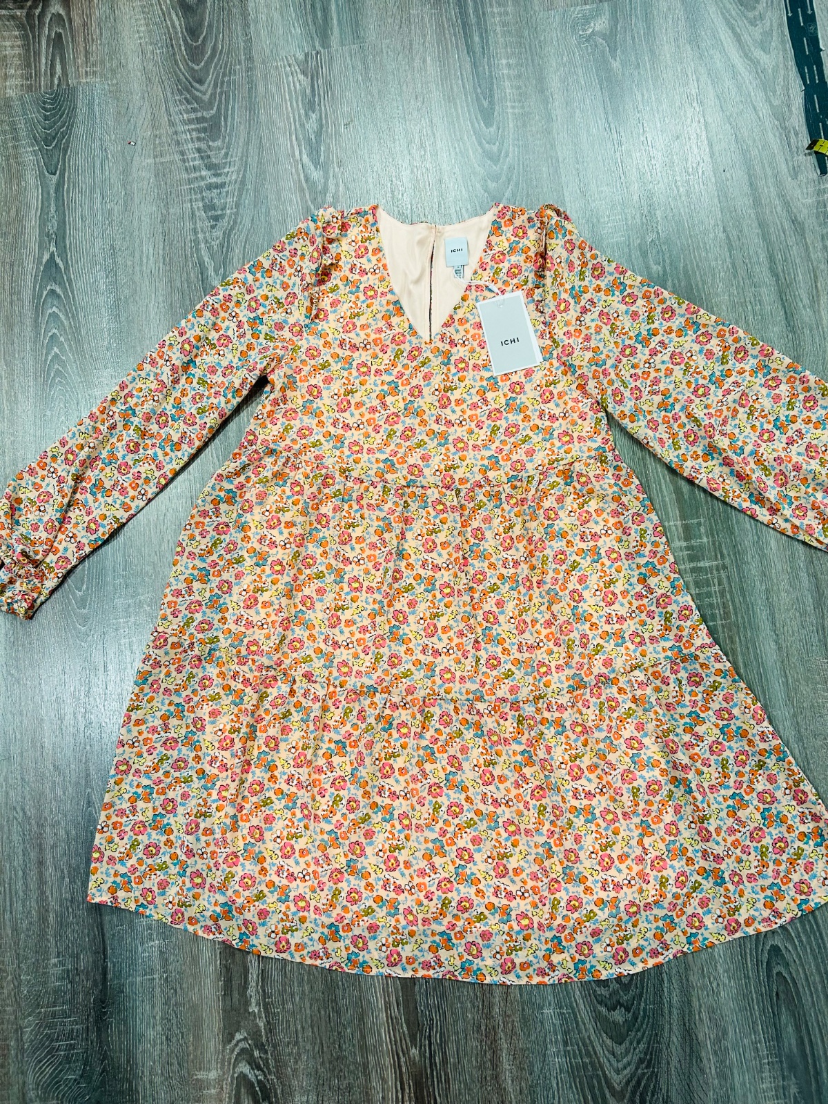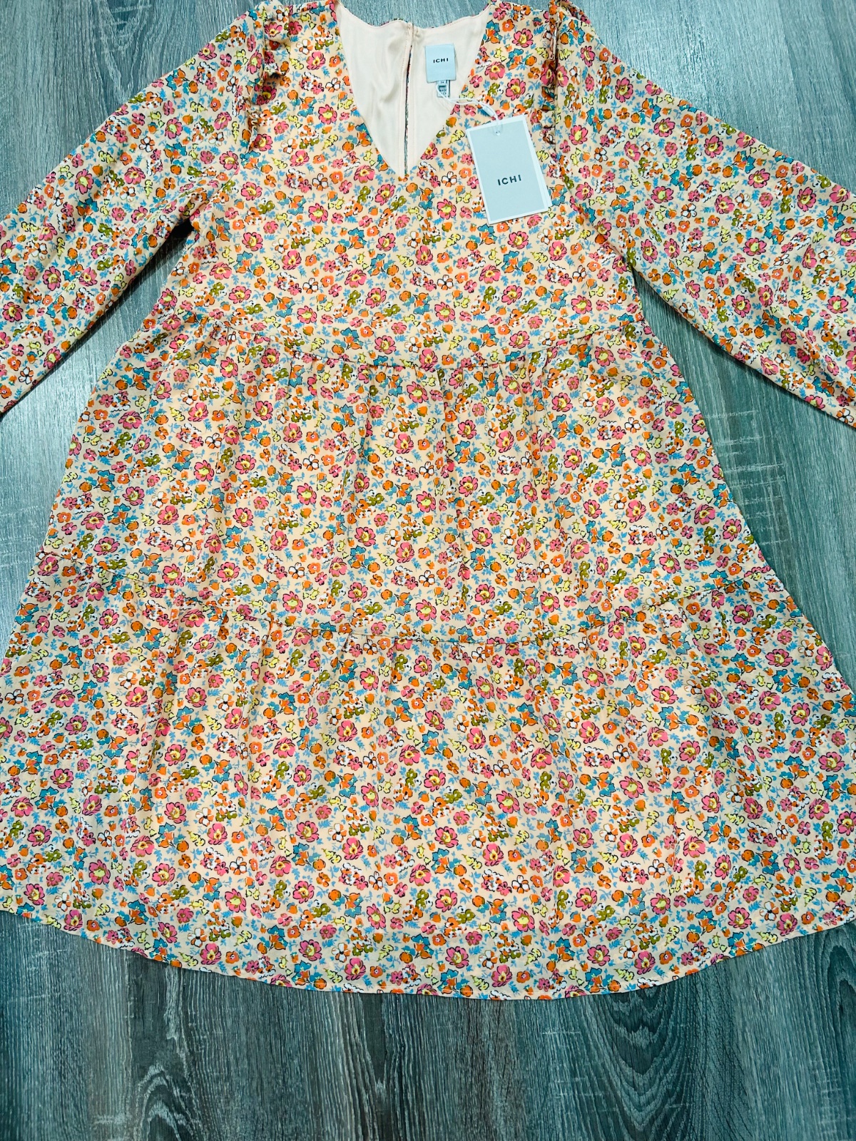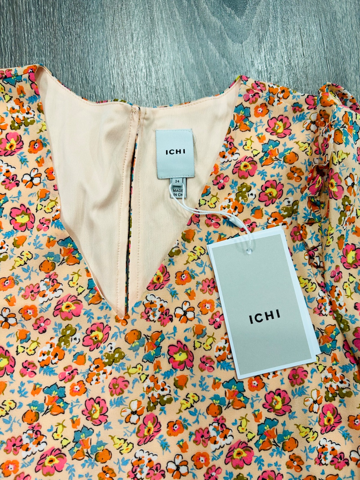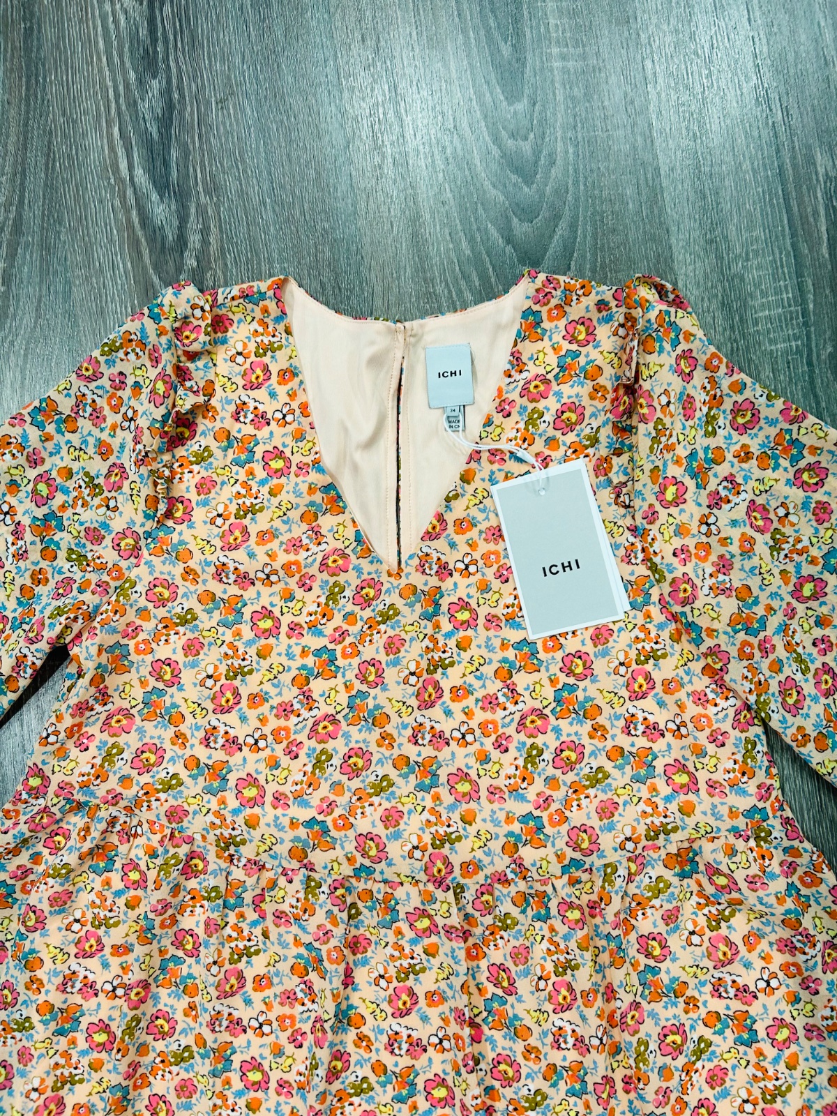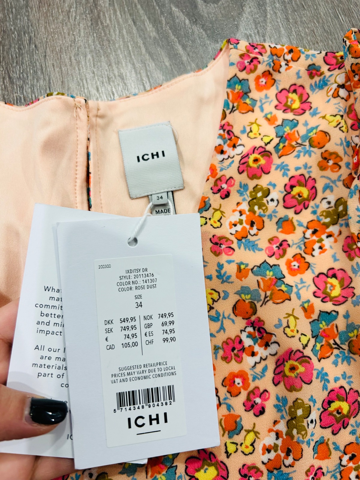 ICHI nadherne nove letne kvetinove šaty,komplet s visackou,PC 75 eur,lahucky padavy material,velkost pise 34 no zodpovedaju velkosti M,dlzka je 96cm,dlzka rukava od krku je 73cm a sirka v podpazusi je cca 46x2cm a sirka v pase je cca 49x2cm