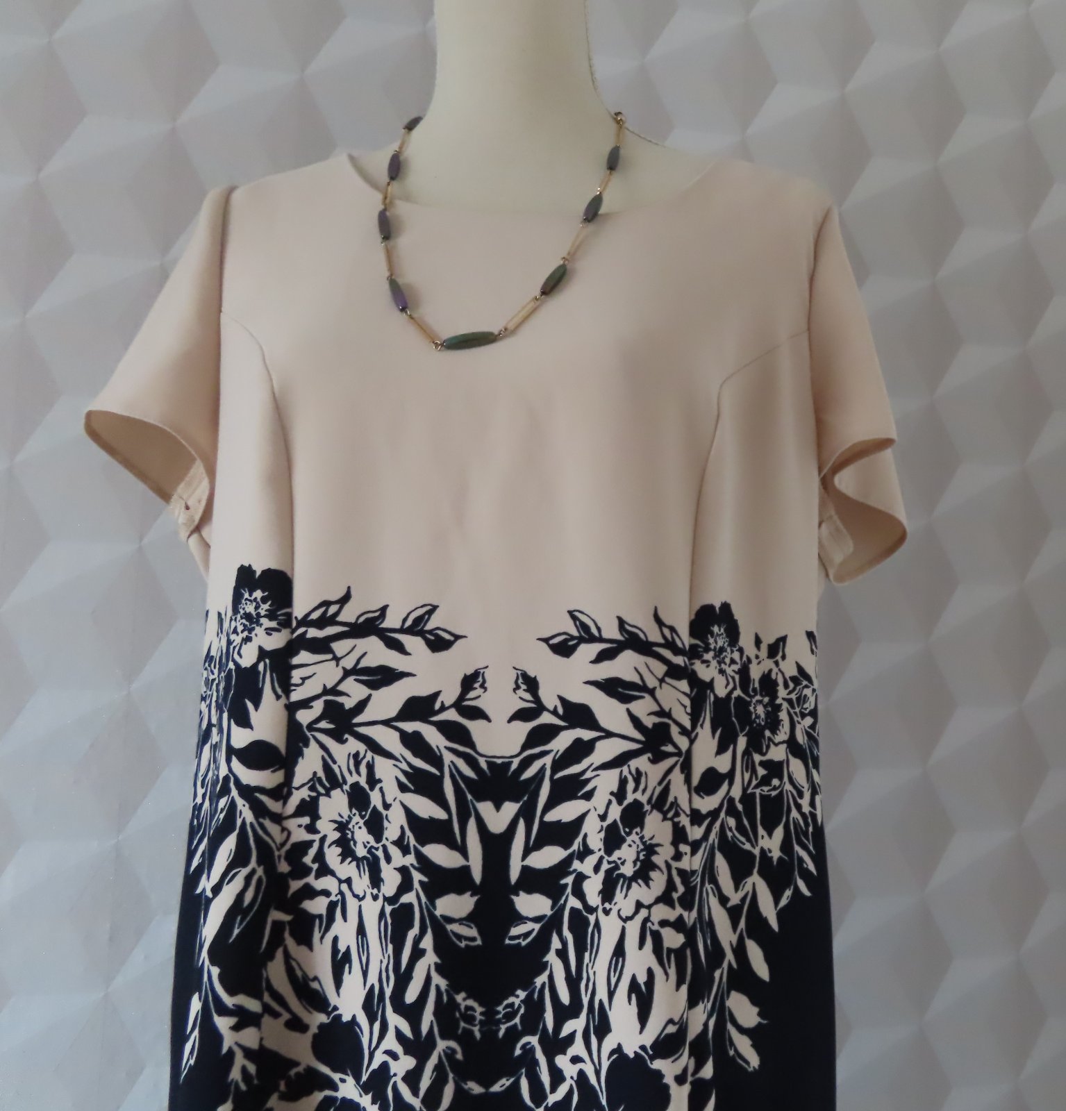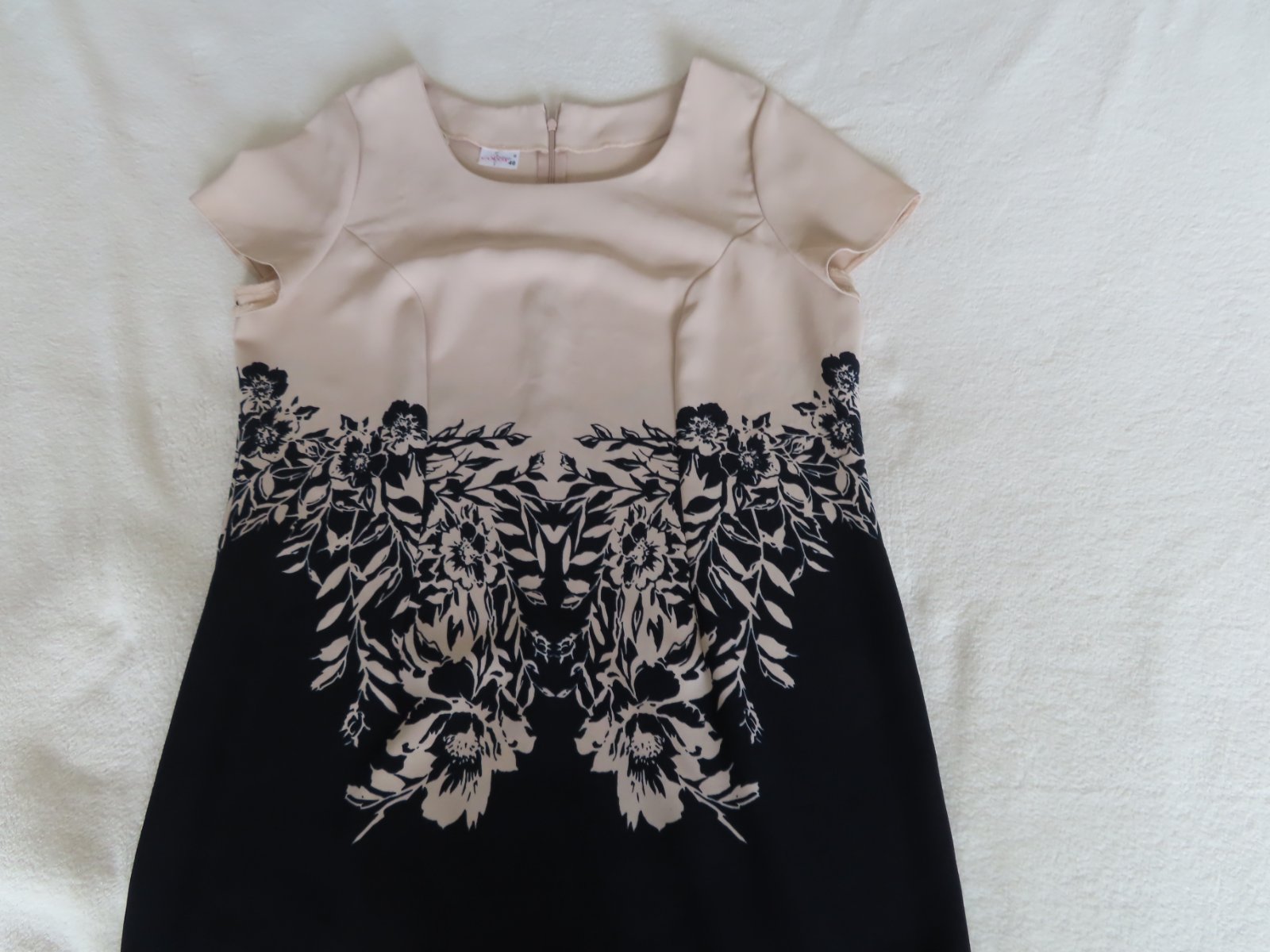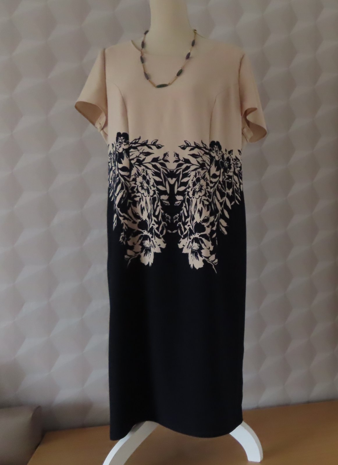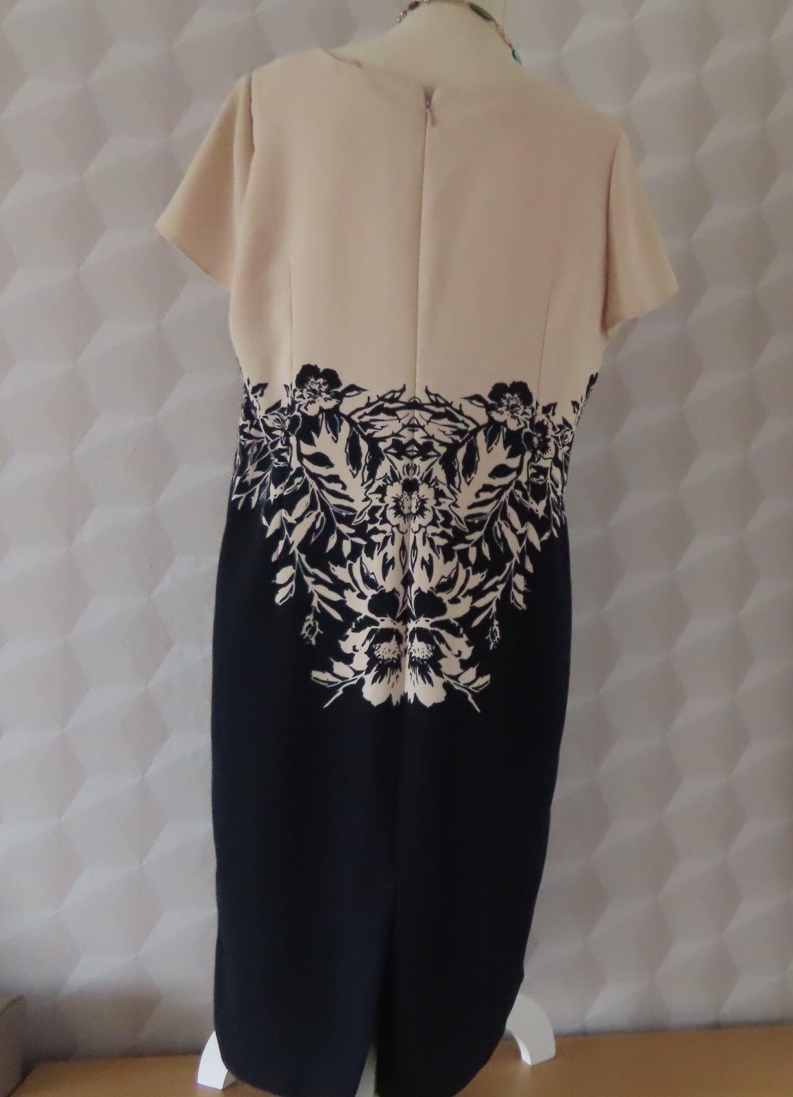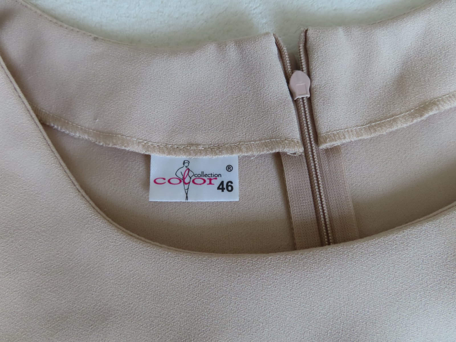Elegantné dámske šaty zn. Color, veľkosť označená 46, sedia na XL - tu sú rozmery: dĺžka 106cm, pod pazuchami 2x55cm, šírka v páse do 2x49cm. Zapínanie vzadu na zips.