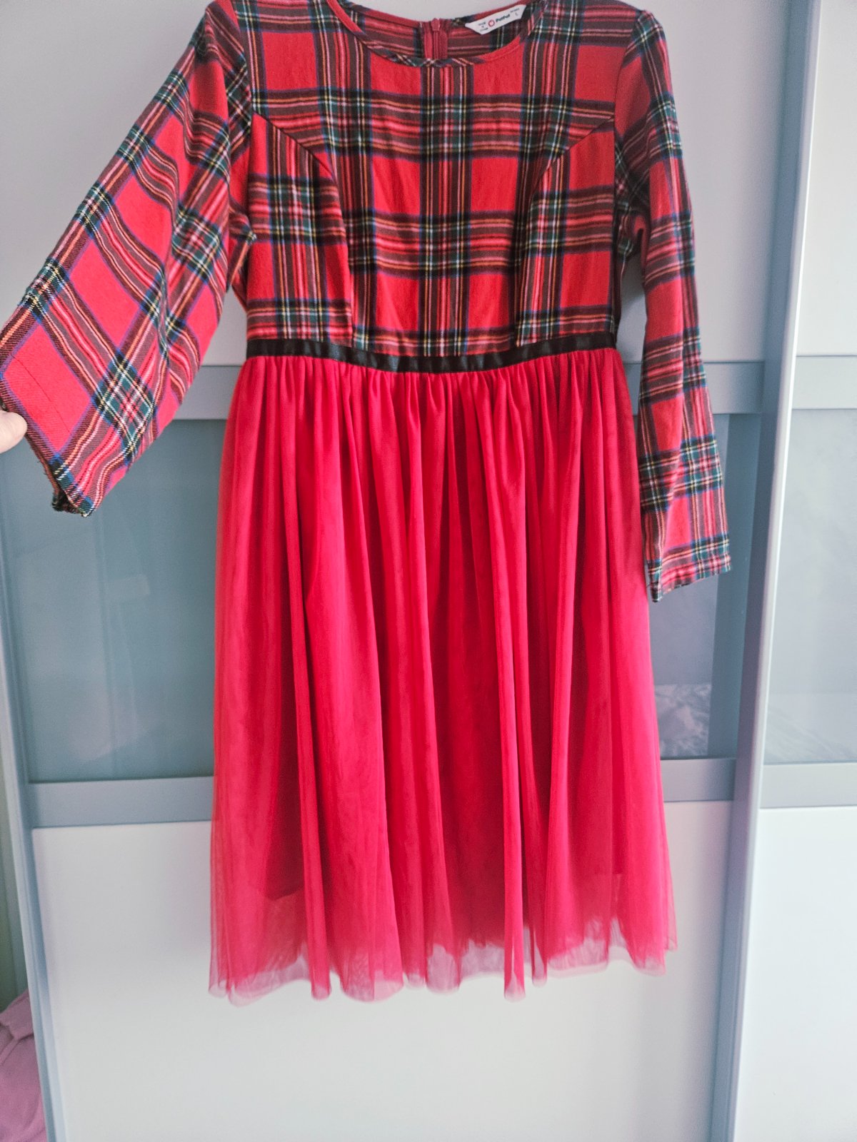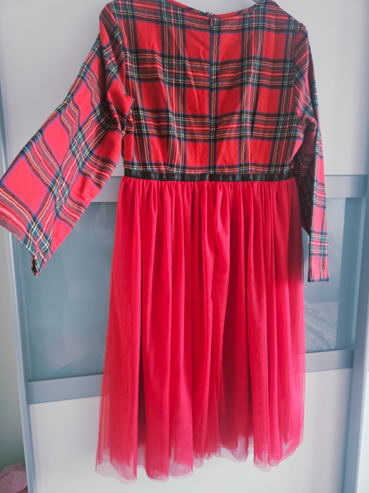 Krásne vianočné šaty s tylovou sukňou, veľkosti L. Ale su mensie, sedia na M, sú prestrihnuté