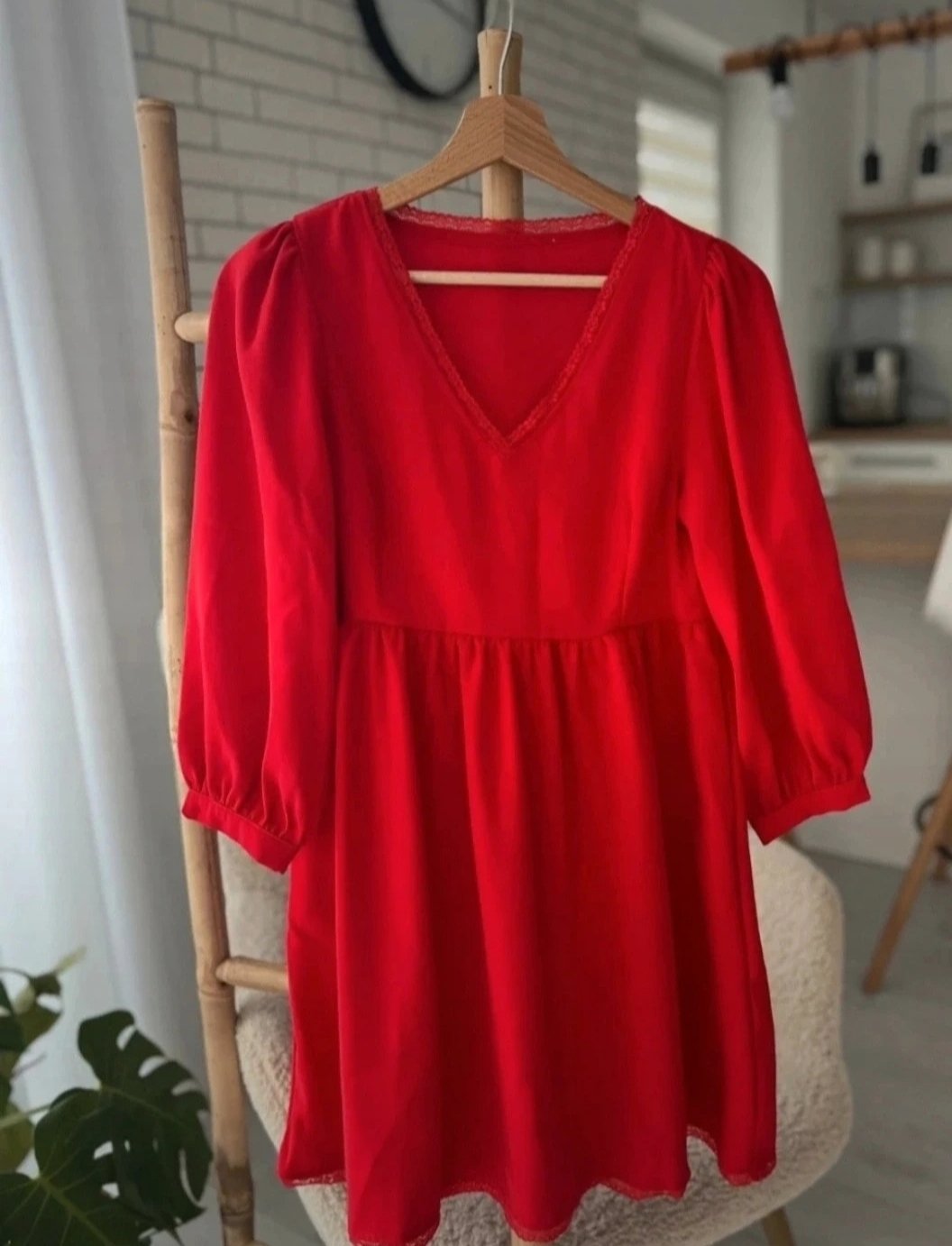Málo nosené červené šaty, ktoré už nesedia. V zadu dlhý zips, na rukávoch ozdobné gombíky dĺžka 82 cm. Sedia od veľkosti 152 -164 až po dámsku Xs,s.
