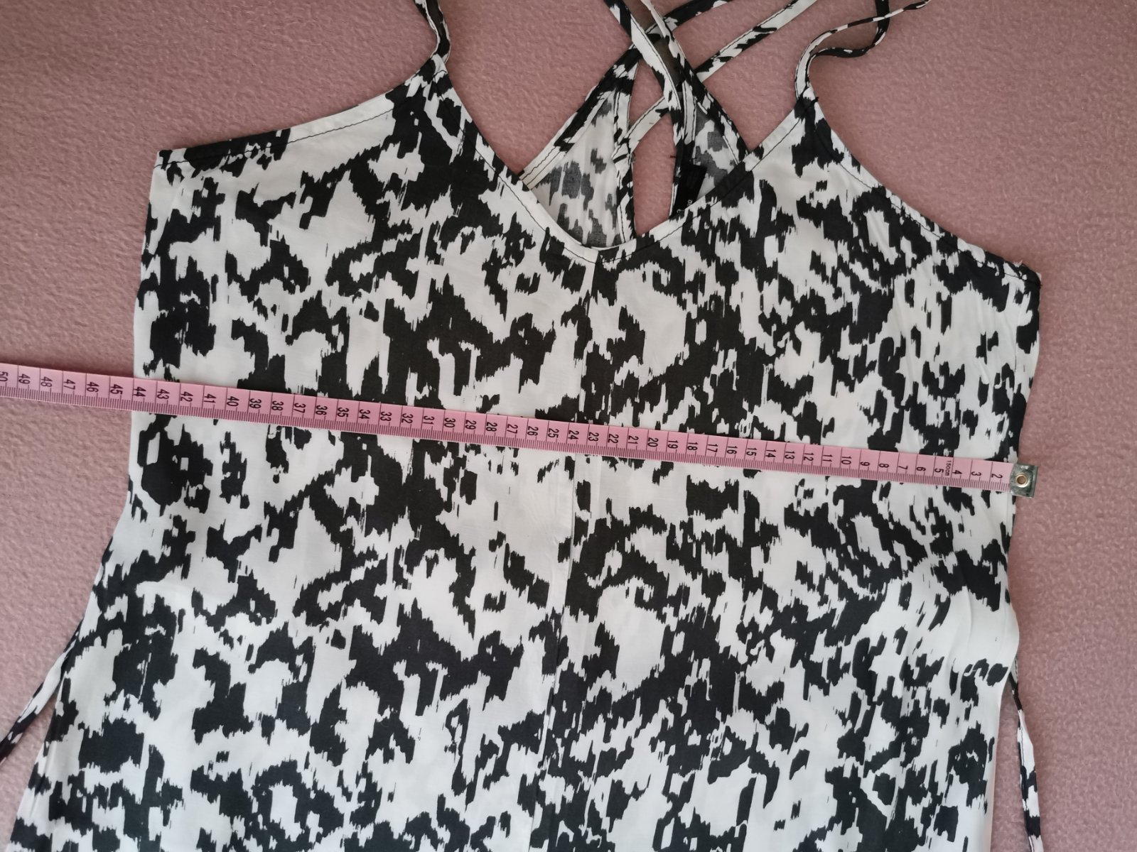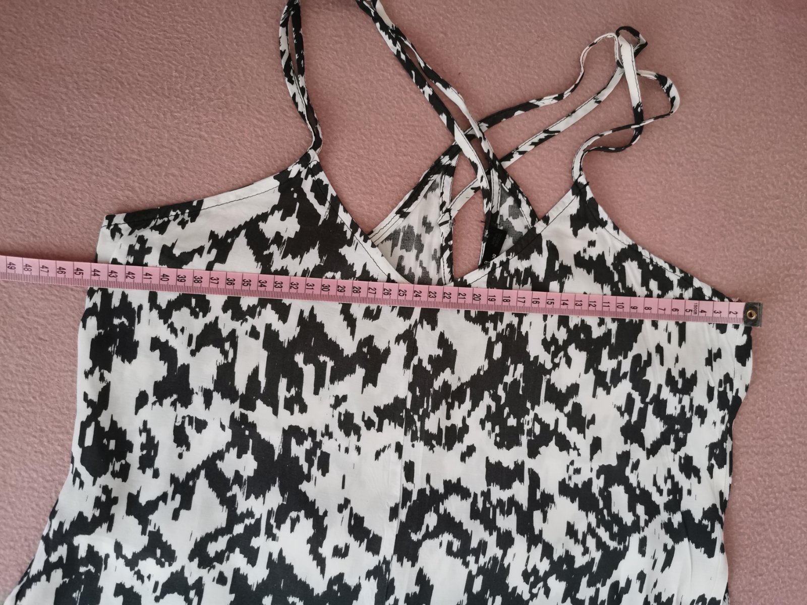 zaujímavo riesená zadná čast- prekrížene tenké dvojradove ramienka krásne ukážu